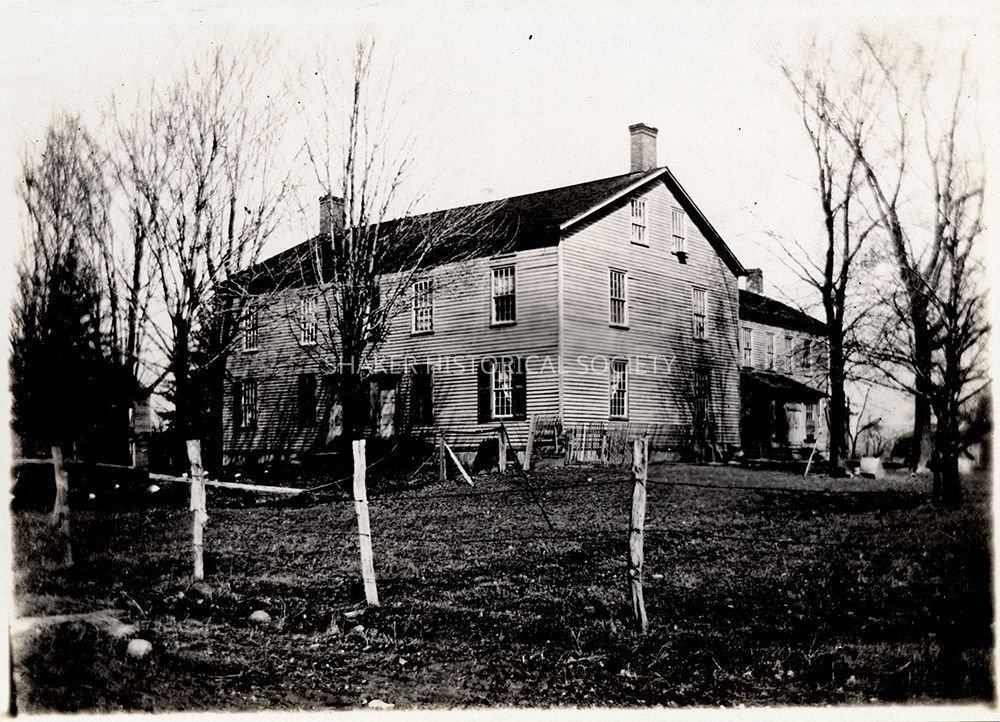 Plate 44 from from Shakers & Kirtland by Louis Baus showing a southeast view of the East Family house near present-day Fontenay Road.