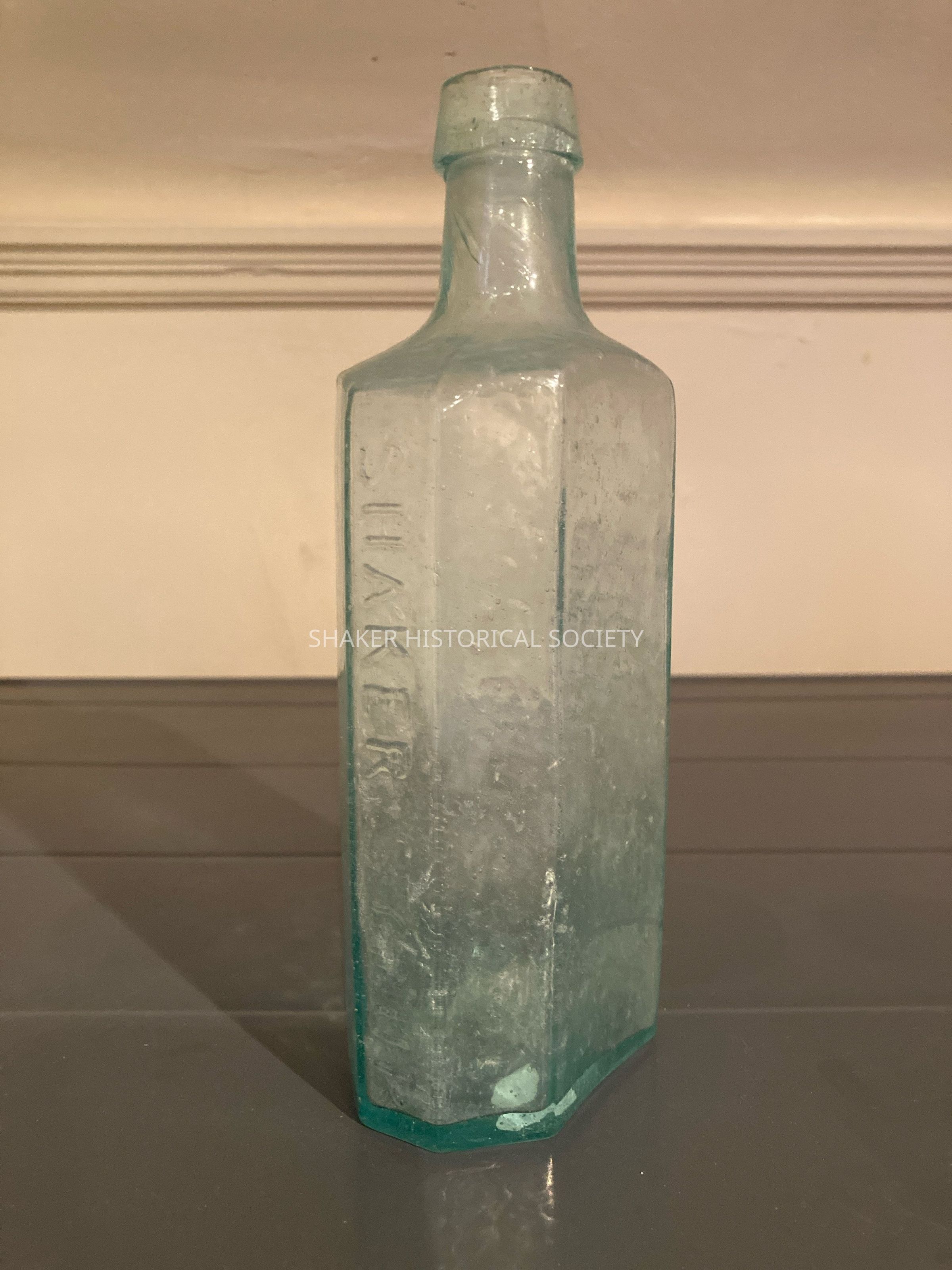 Light aqua mold-blown glass Shaker medicine bottle. In relief down one side: "SHAKER SYRUP", and down the other: "D. MILLER & CO"Acquisition
