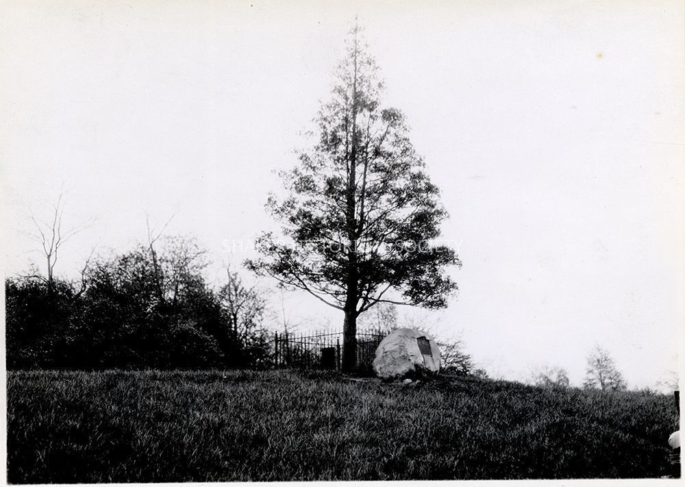Plate 75 from from Shakers & Kirtland by Louis Baus showing the Jacob Russell grave and monument along South Park Boulevard.