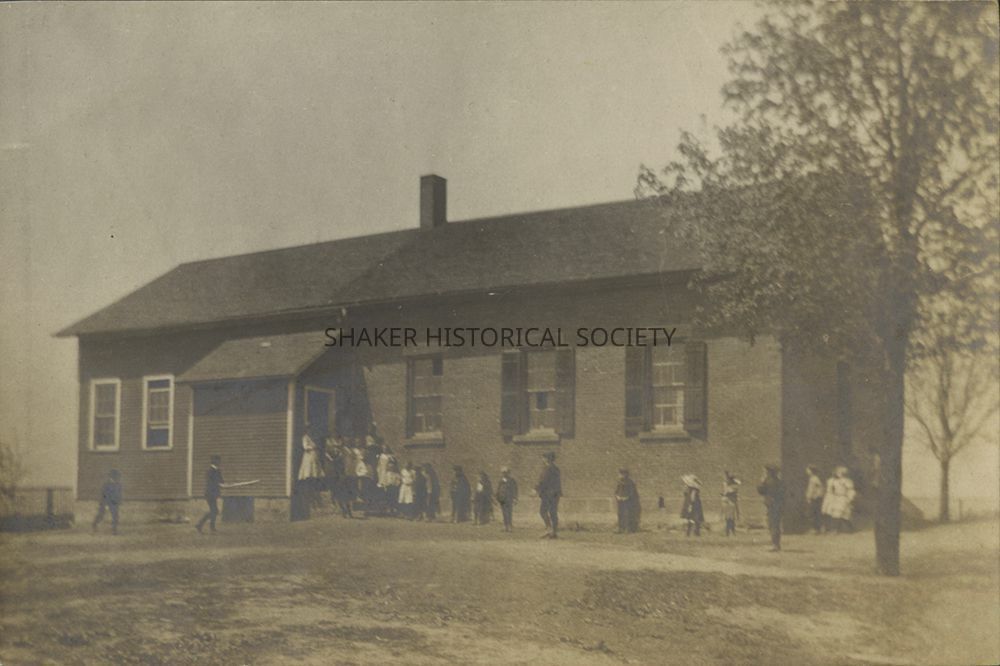 Photograph of students entering the Hornet's Nest School, located on Lee Road across from Warrensville West Cemetery. The schoolhouse served students in the Lee-Kinsman neighborhood until East View School was built in 1910.Photograph Details