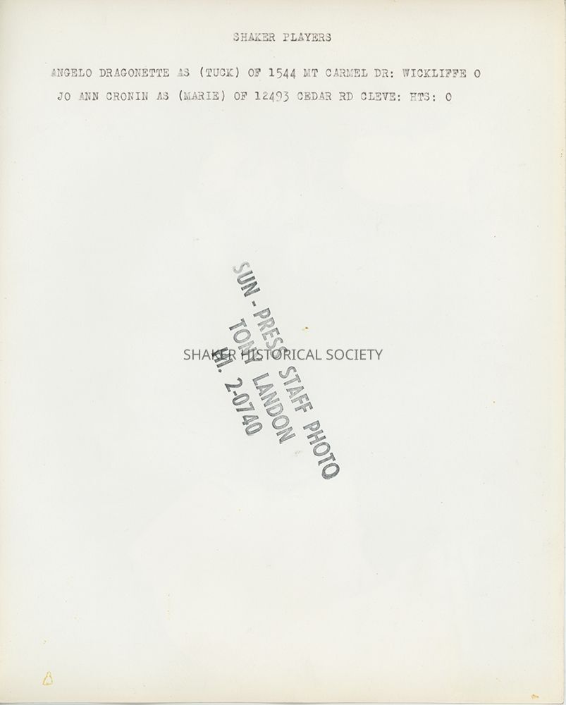 Shaker Players, Jo Ann Cronin, Angelo DragonetteSubject Place