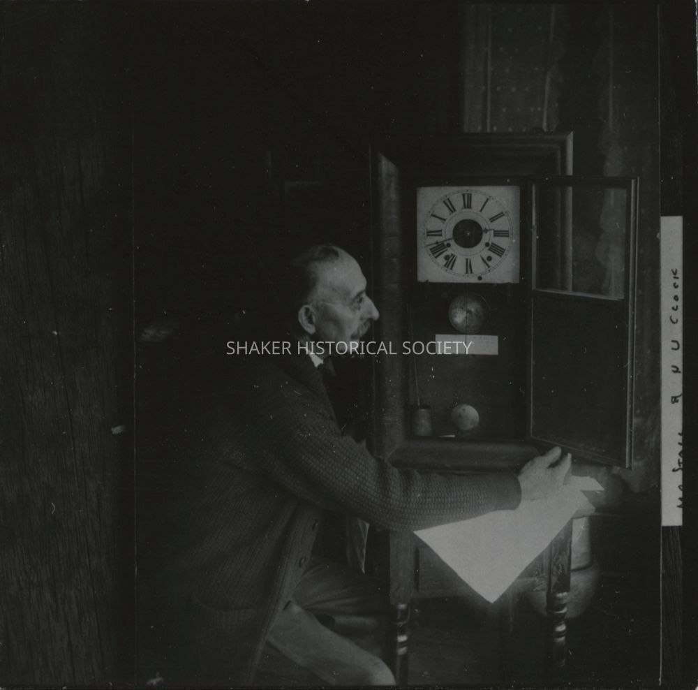 Joseph Stoll and his wife Margaret "Alma" Stoll grew up in the North Union Shaker Village. The clock depicted was donated to the Shaker Historical Society by the Stoll's daughter, Alma Seitz, at SHS's first organizational meeting on October 15, 1947.Location