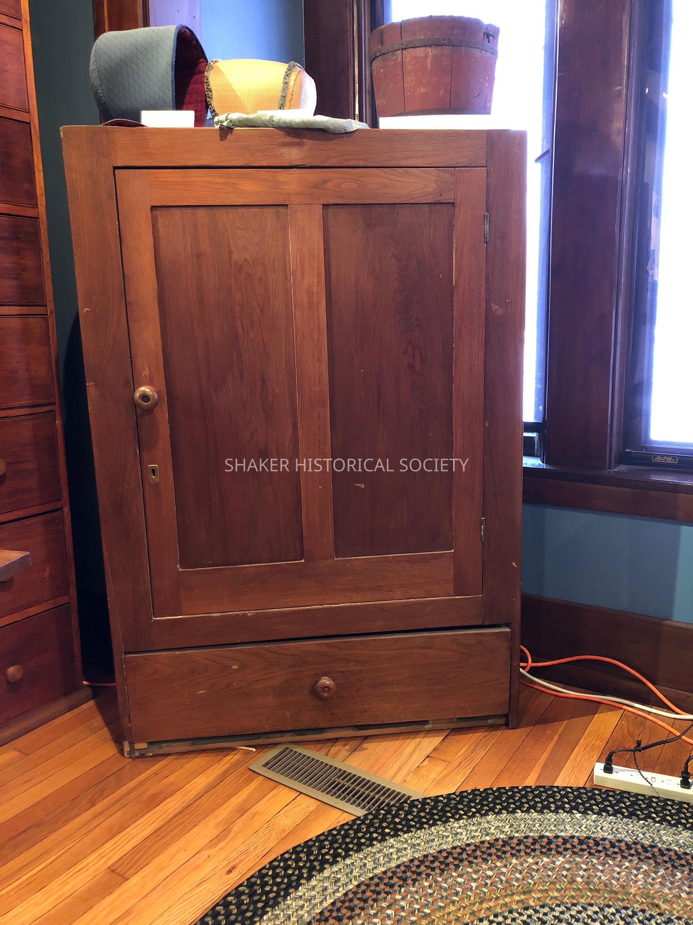 Large cabinet or dresser. Painted. One large cabinet door and a large drawer on the bottom.