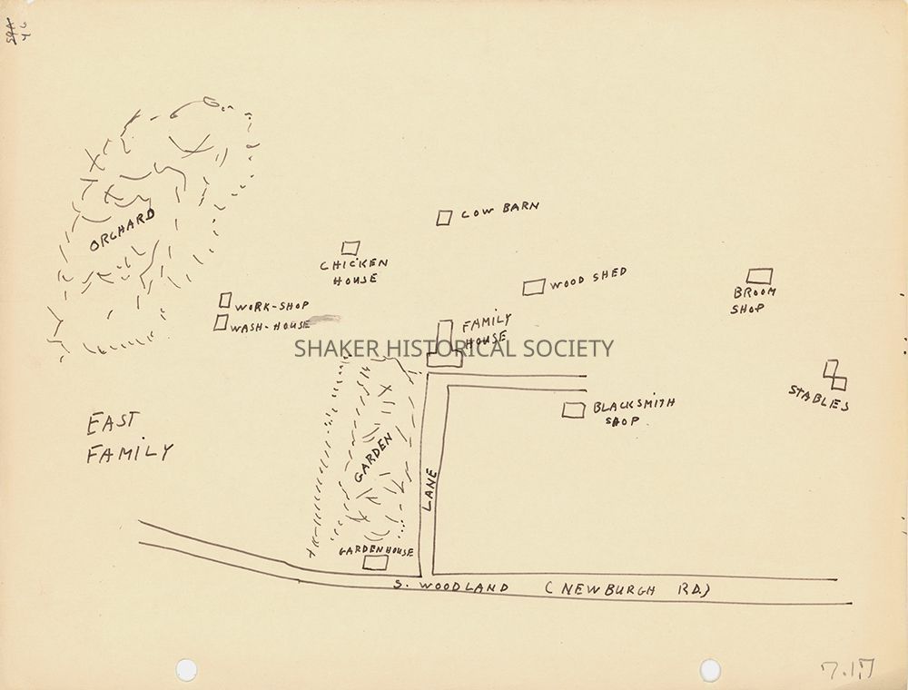 Copy of a hand-drawn map of the North Union Shaker Village East Family.Collection