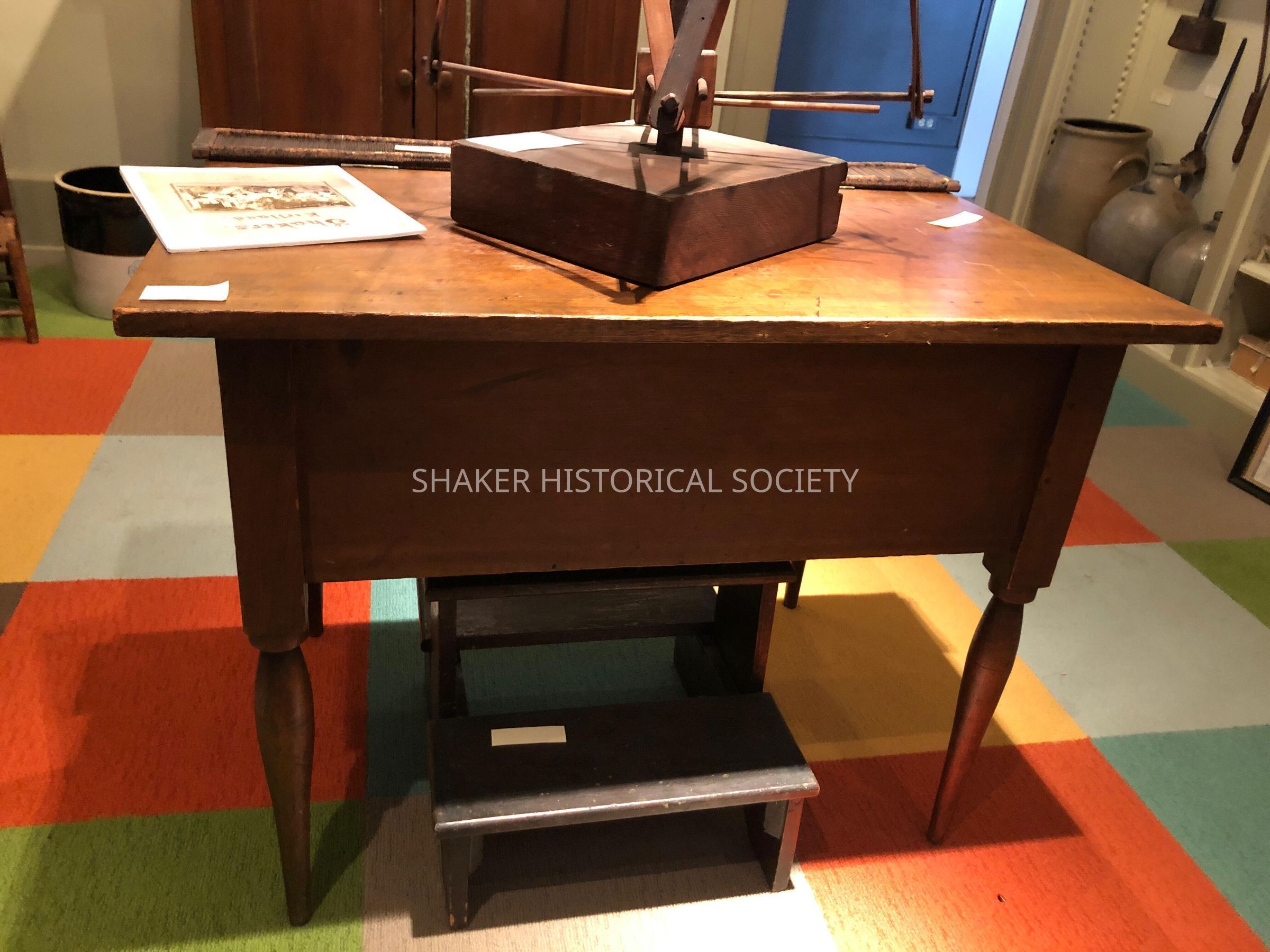 Mrs. Brown inherited same from Wm. Brugge, her father's cousin. He found it in office of Center Family, when he moved in there after Shakers had left and the place was rented. This table was there. Its construction is unique. Mrs. Brown sold table & blanket box for Mrs.Piercy for Society.Collection