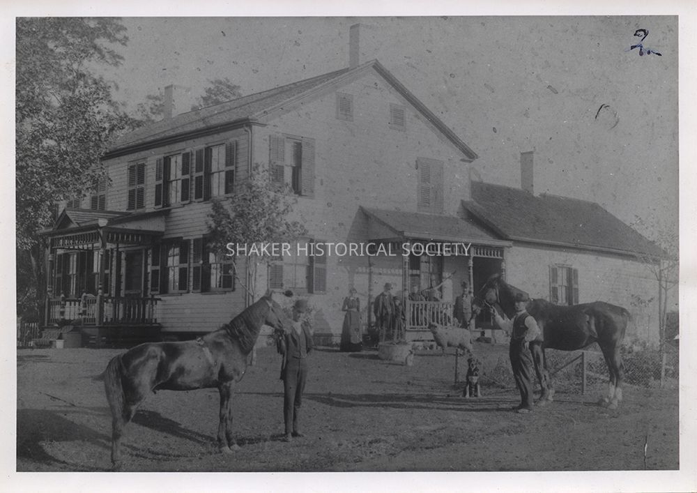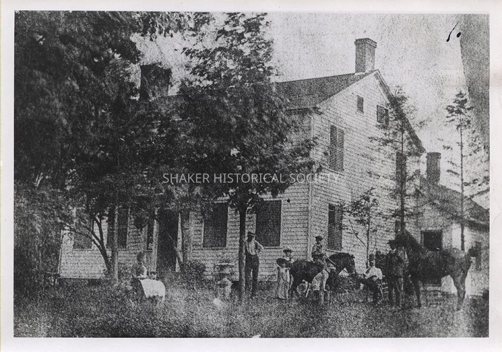Page from a Warrensville Township scrapbook (SCR WAR 4) with undated black-and-white photographs depicting the Moses Warren House, built by Moses Warren Sr. in 1817 and later sold to John Palmer.Photograph Details
