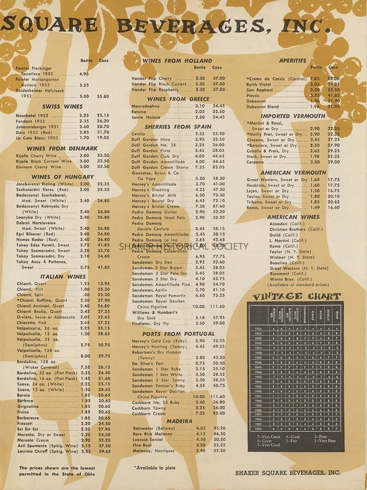Shaker Square Beverages Wine List, 1957Entry/Object ID