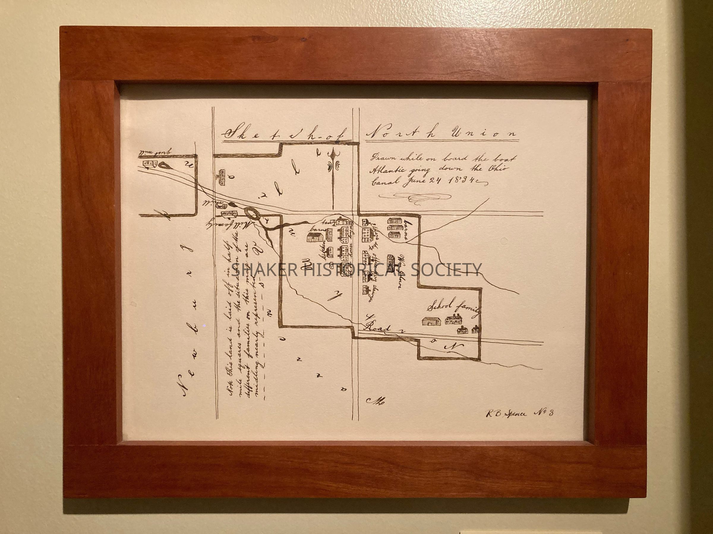 Note in top right corner reads: "Drawn while on board the boat Atlantic going down the Ohio Canal June 24, 1834." Signed "R B Spence No.3" in the bottom right corner.Collection