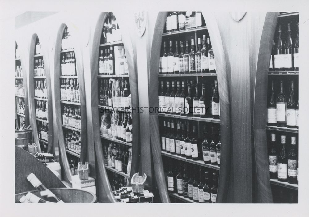 Undated black-and-white photograph of an unidentified wine shop, possibly Shaker Square Beverages.Location