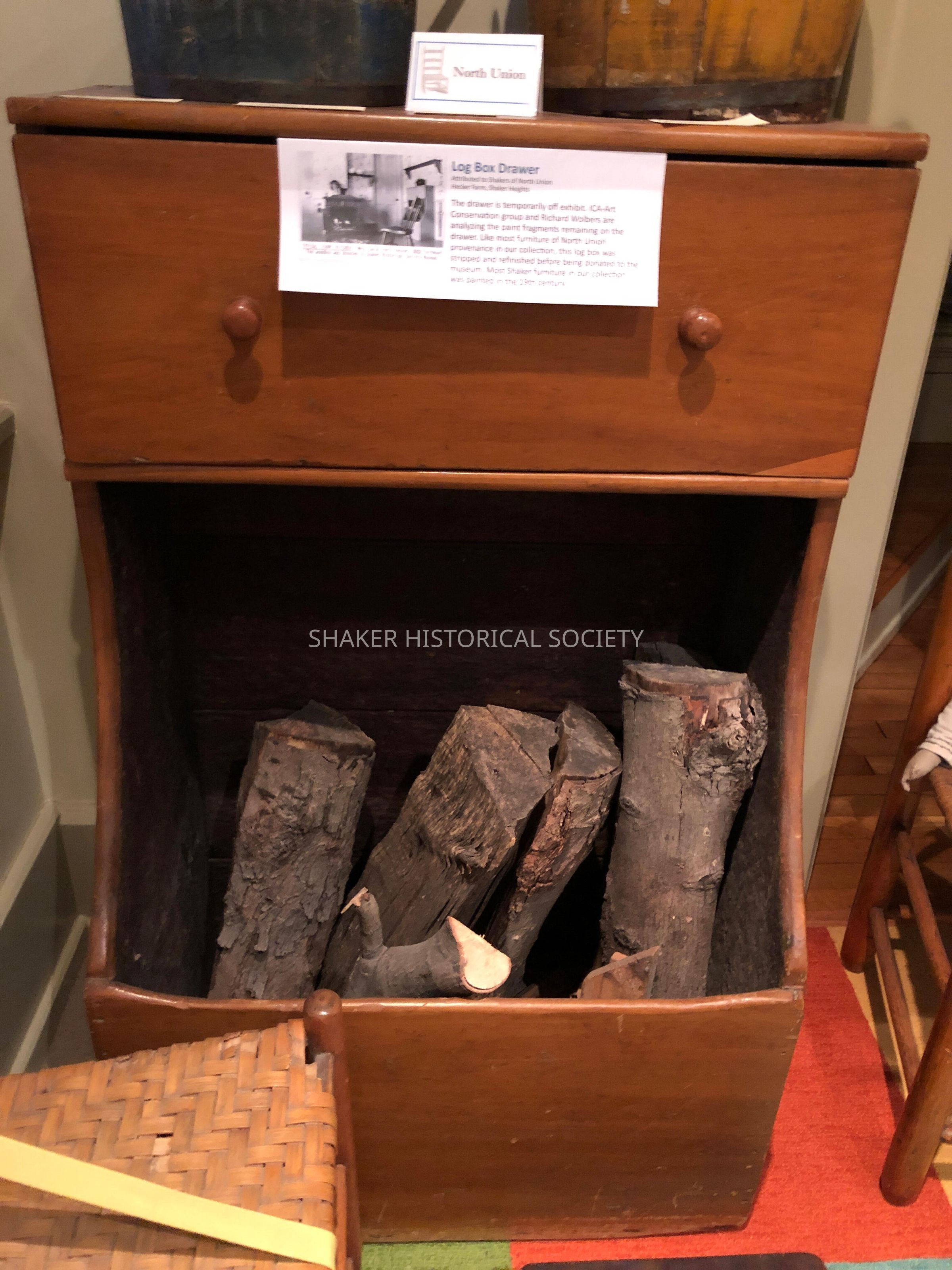Refinished North Union poplar wood box with drawer for kindling and open bottom for wood.Collection
