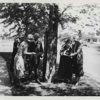 Beatrice Hertzmark, Betty Blackmore, and Shirley Johnson with Shaker Players Diorama, 1949