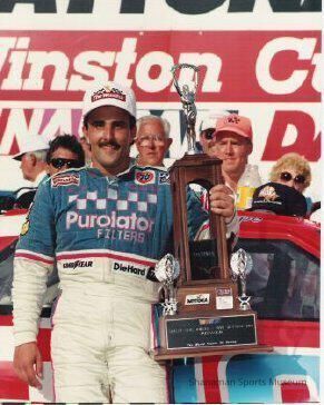 A smiling Derrike Cope holds his first-place trophy after winning the Daytona 500 in 1990. Over the years, Cope, born in California in 1958 and raised Spanaway, raced stock cars and was a team owner. In 1984, he was the Winston West Series Rookie of the Year. Over his career, he drove in 425 races over 27 years. In 2017, he completed part-time in the Monster Energy NASCAR Cup Series, driving the No. 99 Chevrolet Camaro ZL1 for StarCom Racing.Lexicon