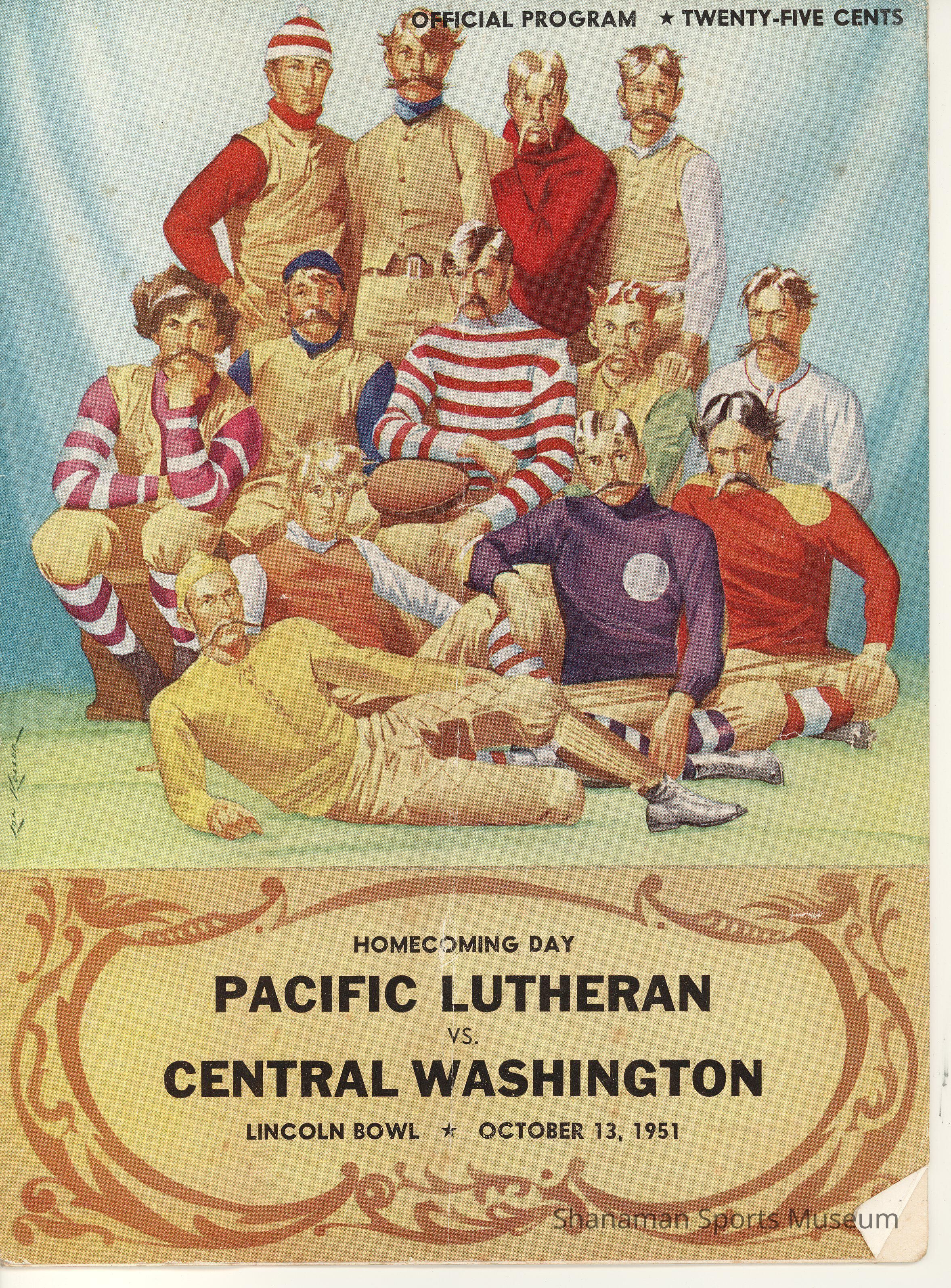Program. Homecoming Day, Pacific Lutheran vs. Central Washington. Lincoln Bowl, October 13, 1951.Lexicon