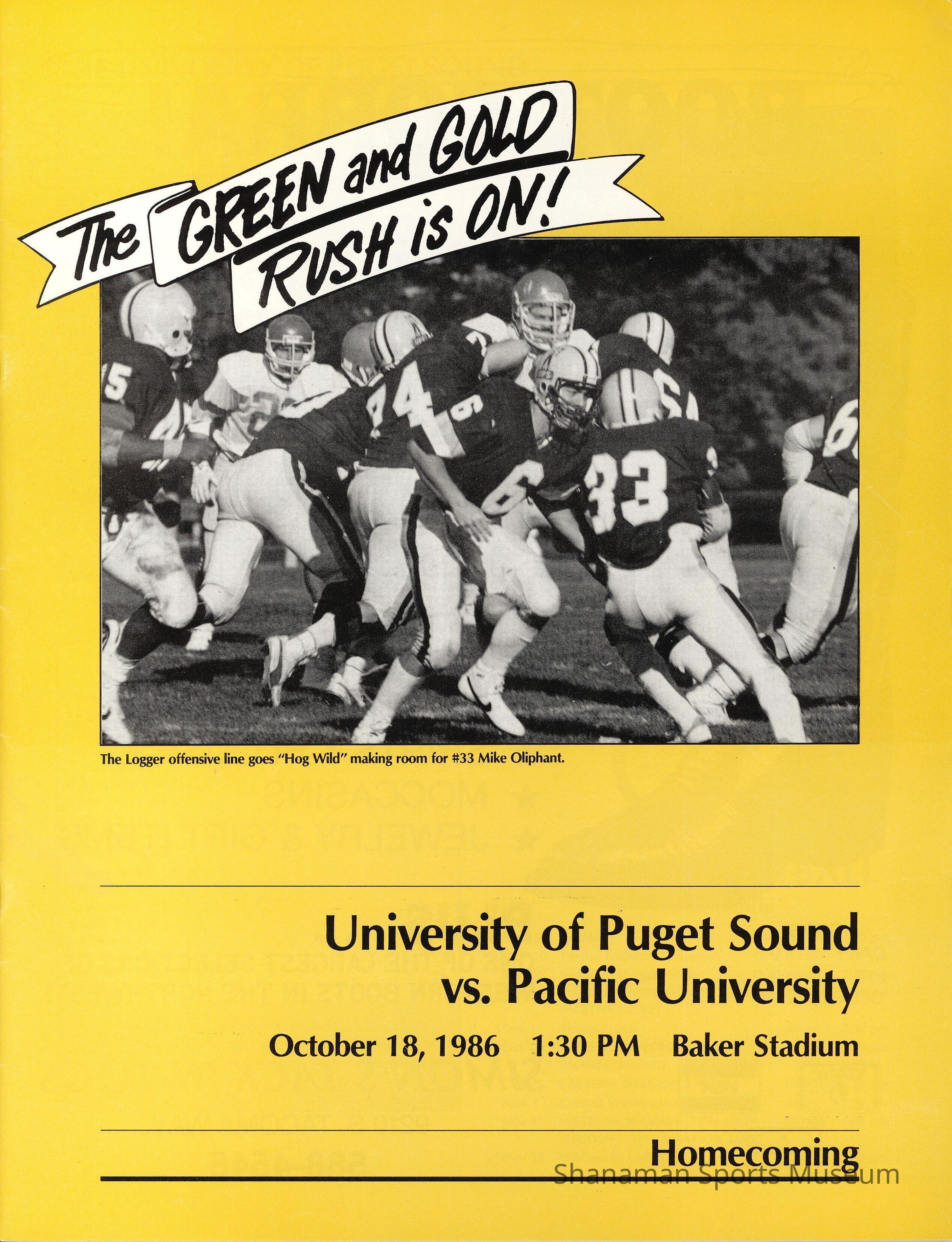Program, UPS vs. Pacific University [Forest Grove, Oregon], Homecoming, October 16, 1986Lexicon
