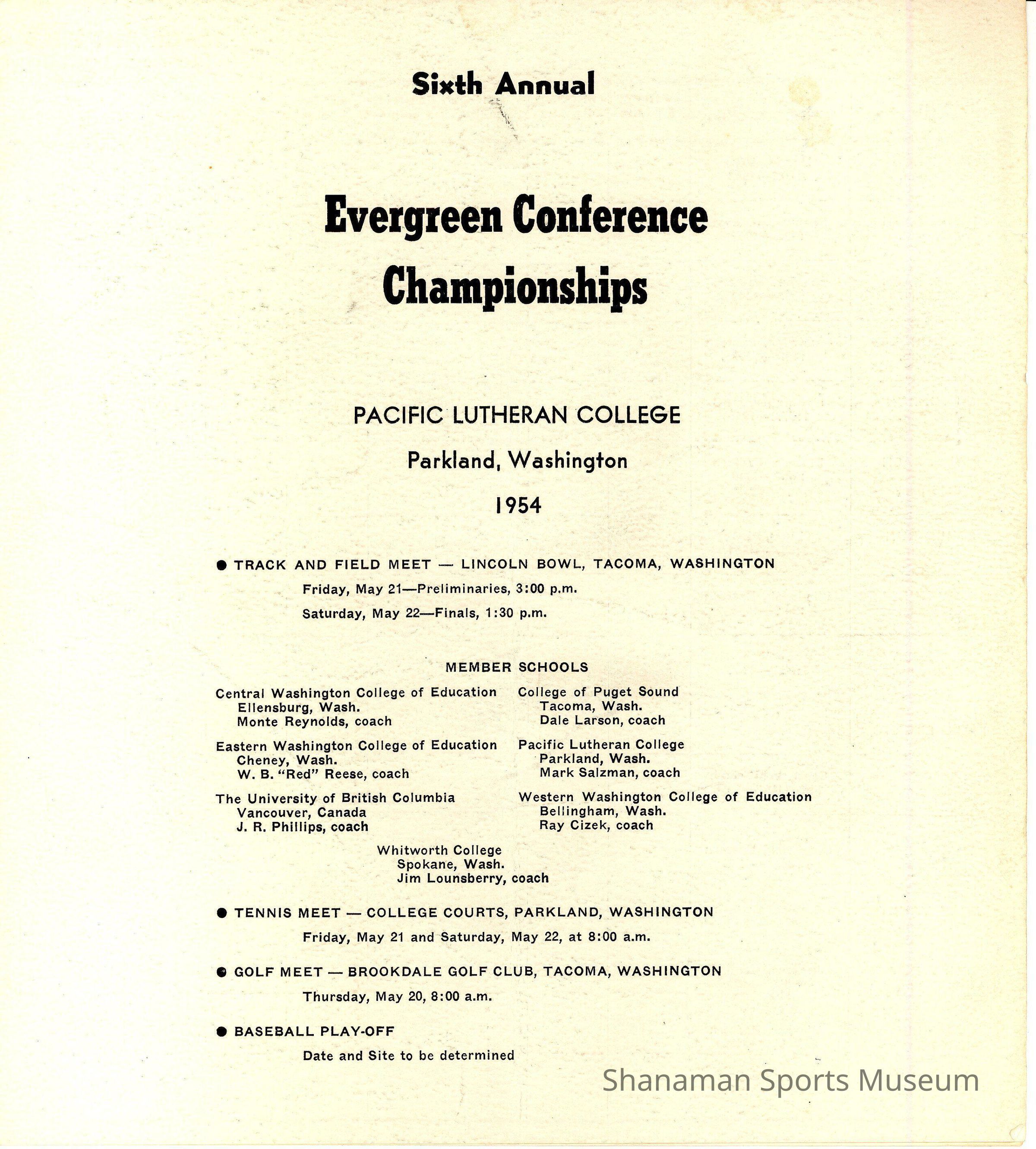 Program, Sixth Annual Evergreen Conference Championships, 1954