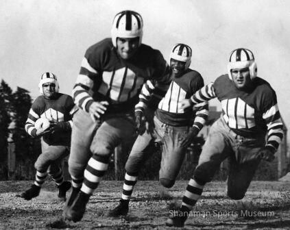 Norm Mayer (second on the left) runs a drill with three other running backs with the College of Puget Sound's football team back in 1936. After high school in Long Beach, California, Mayer accepted a football scholarship to the University of Washington and later transferred to the College of Puget Sound in 1935 and was an all-conference player. Several years after graduating from CPS, Mayer became the head football coach at Lincoln High School and coached there 23 years, winning 140 games to become the third winningest football coach all-time in Pierce County. Mayer picked up his 100th win when Lincoln defeated Bellarmine 40-0.