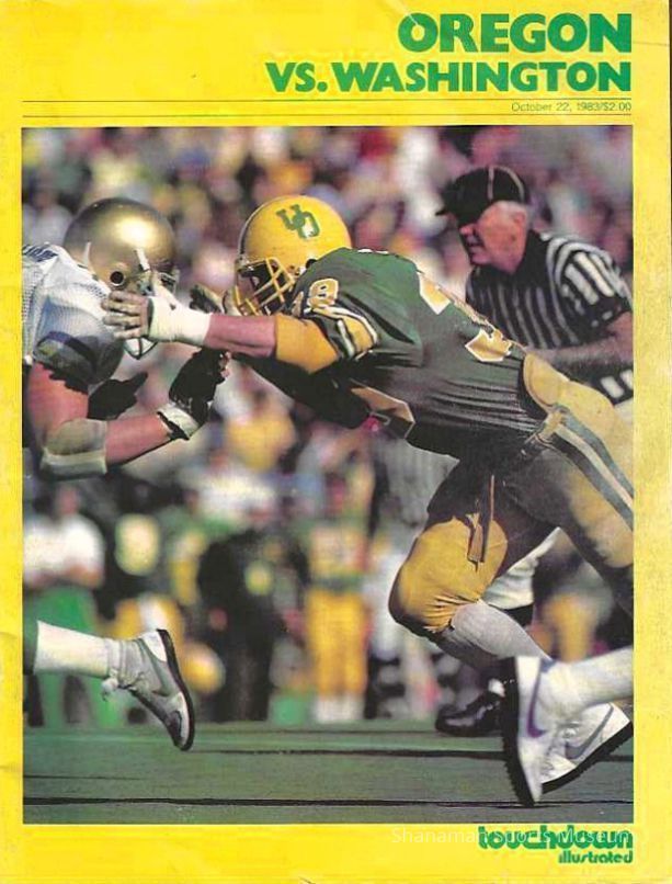 A football program from University of Oregon (UO) vs University of Washington (UW), October 22, 1983. From Touchdown Illustrated, vol. 19, no. 24.