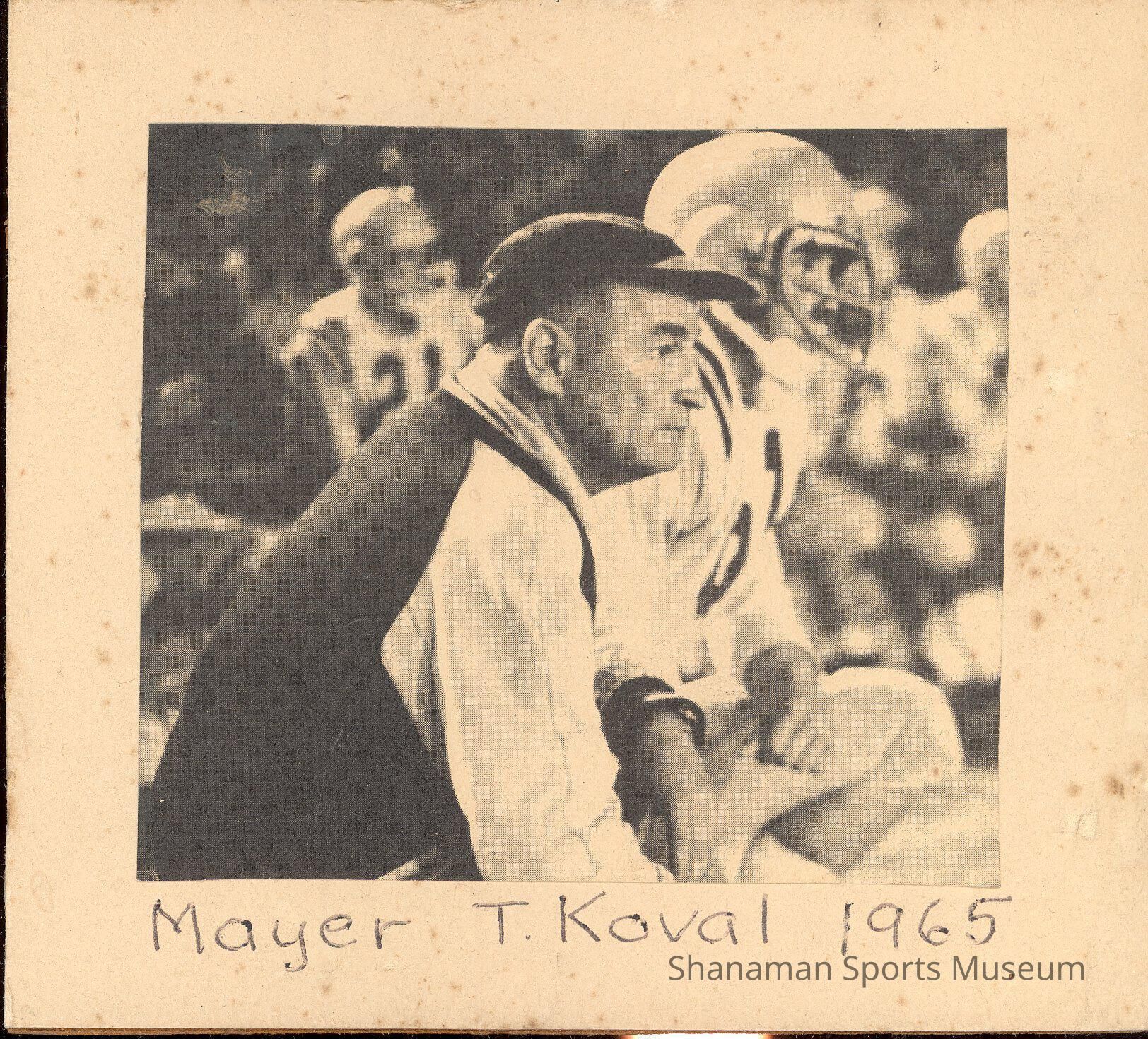 In a fall evening back in 1965, Lincoln High School football coach Norm Mayer kneels on the sideline as he watches his team play a football game in Lincoln Bowl. Kneeling next to Mayer and watching the game is Tom Koval. This old black-and-white photo is a copy of a photo that was in the Tacoma News Tribune newspaper. In his 23 years as the Lincoln Abes coach that began in 1945, Mayer built a winning tradition, compiling a 140-50-6 record. He's one of 12 coaches in the county to have surpassed 100 victories and is third all-time.Lexicon
