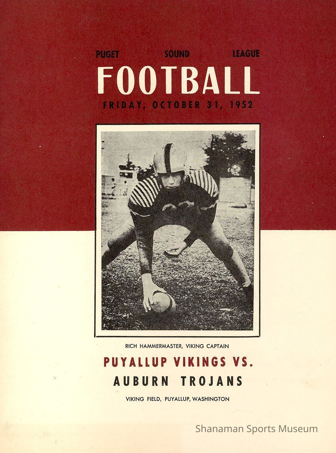 Program- football, Puyallup Vikings vs. Auburn Trojans, Friday October 31, 1952.Archive Details