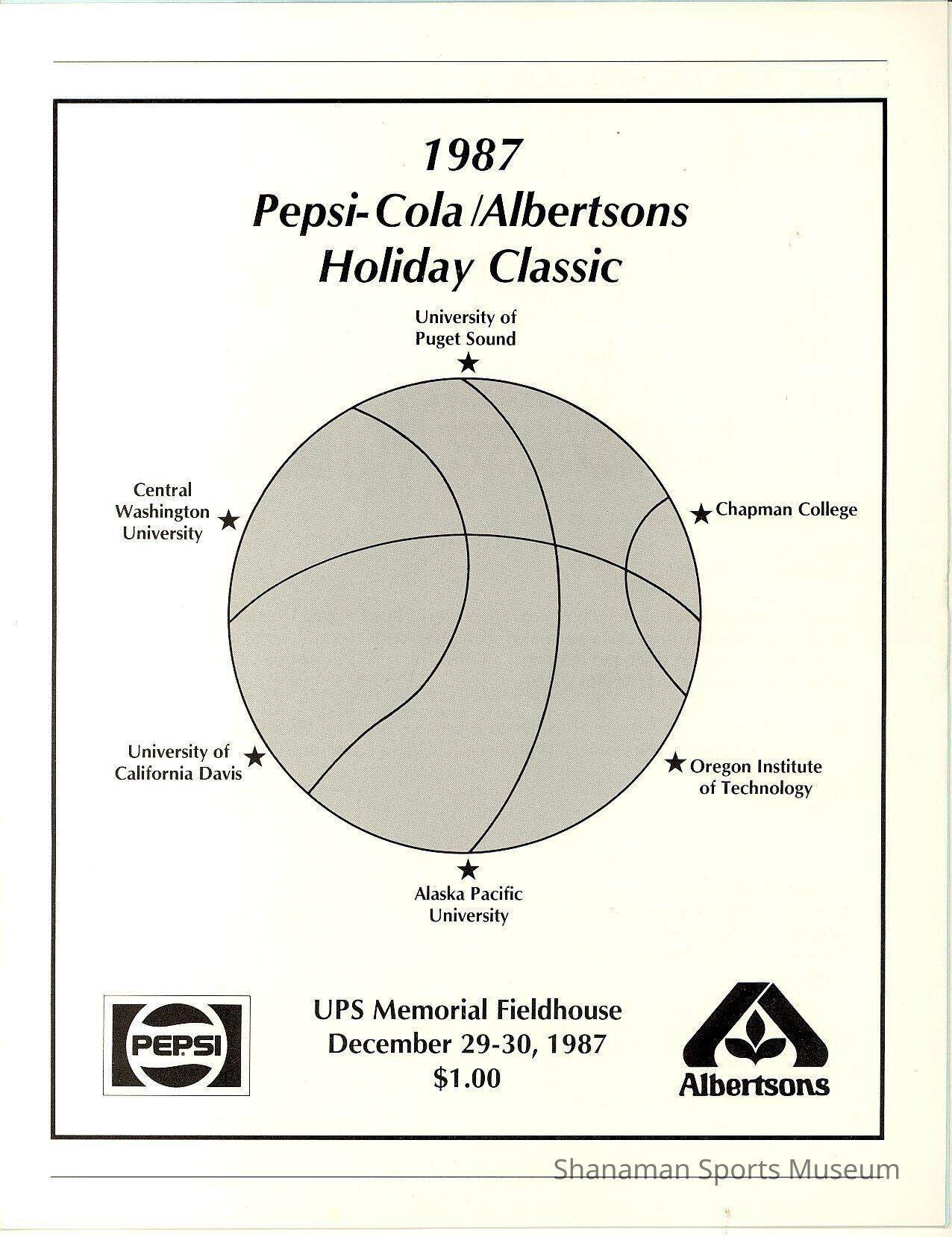 Program, basketball, UPS Holiday Classic, Dec. 29-30, 1987.