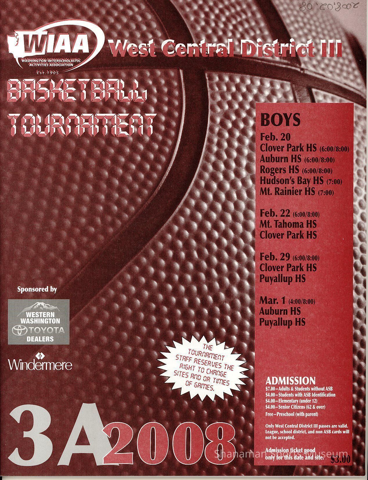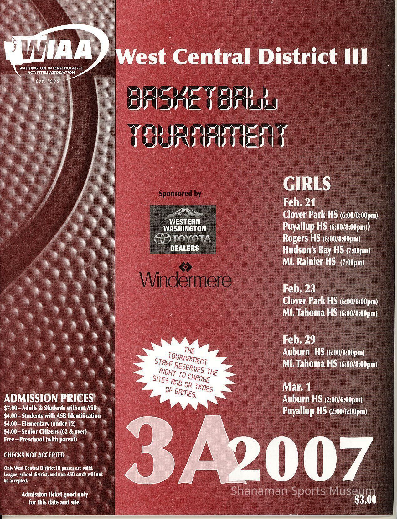 Program- 2007 West Central District III 3A high school basketball tournament.