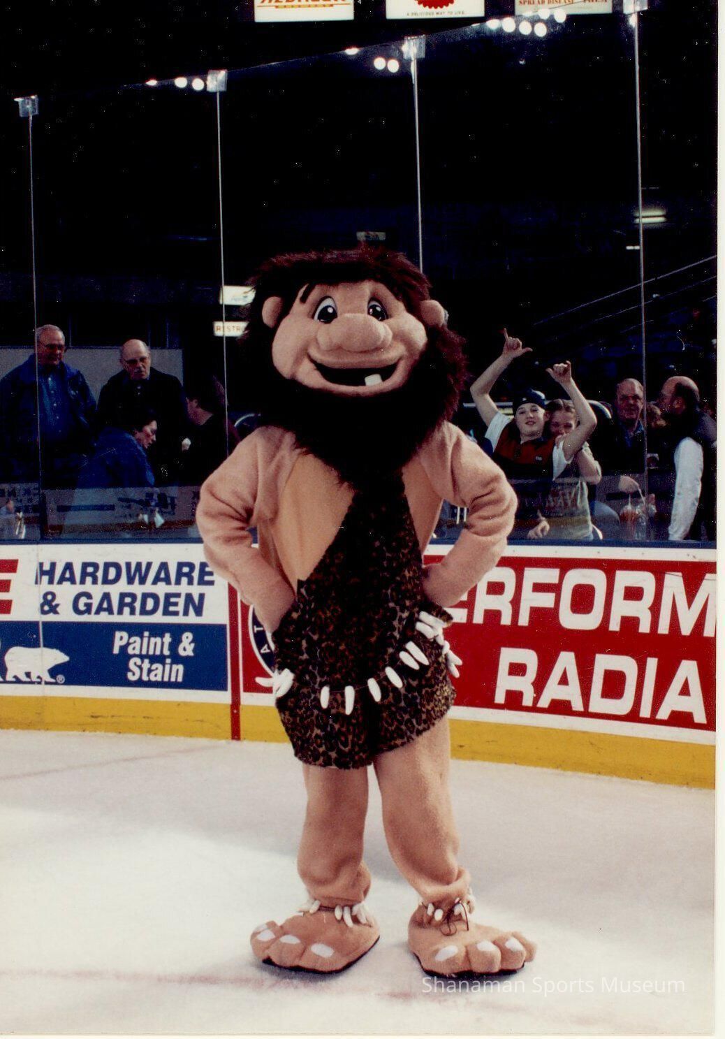 The Tacoma Sabercats mascot, “Ugh,” skates on ice during a West Coast Hockey League game. The Sabercats were a professional minor league hockey team that began playing in the 1997-88 season. Tacoma won the regular-season Northern Division title and reached the league finals in its first season. The Sabercats lost to the defending champion San Diego Gulls in the league’s first Taylor Cup. The following season, the Sabercats returned to the playoffs after winning the Northern Division title again and this time defeated the Gulls in the Cup finals. It would be the only league championship for the franchise, which folded after the 2001-02 season. The Sabercats made the playoffs all five seasons winning three division championships as well.Lexicon