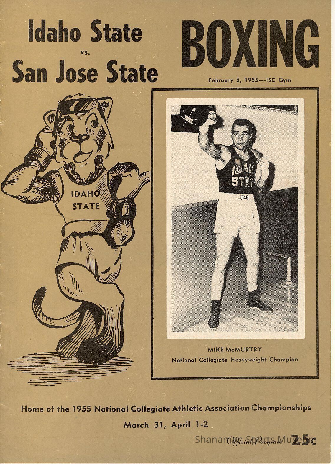 Boxing Program, Idaho State vs. san Joes State, March 31- April 2, 1955. Mike McMurtry on front.