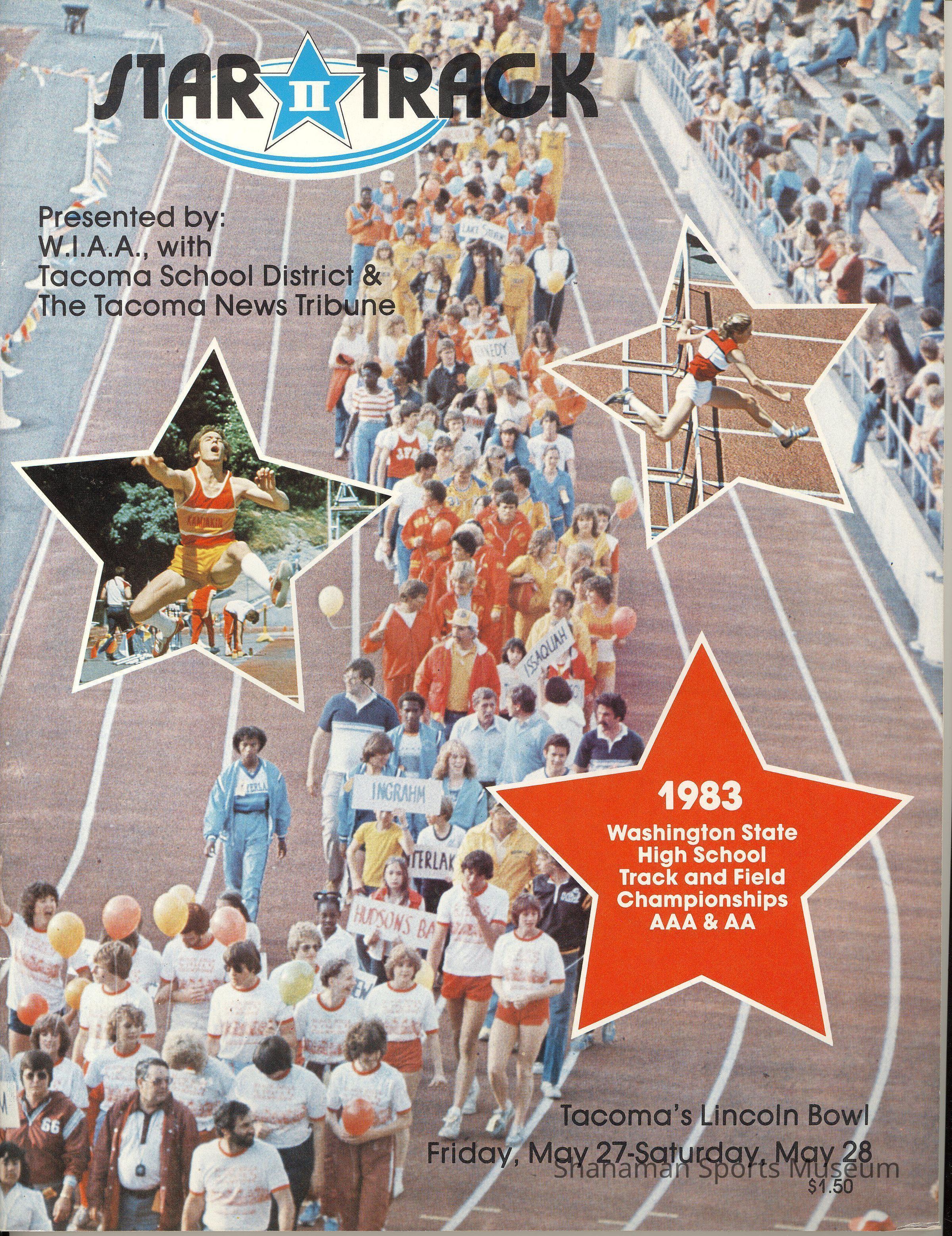Program, 1983 Washington State AAA and AA High School Track and Field Championships, Tacoma Lincoln Bowl May 27-28, 1983.