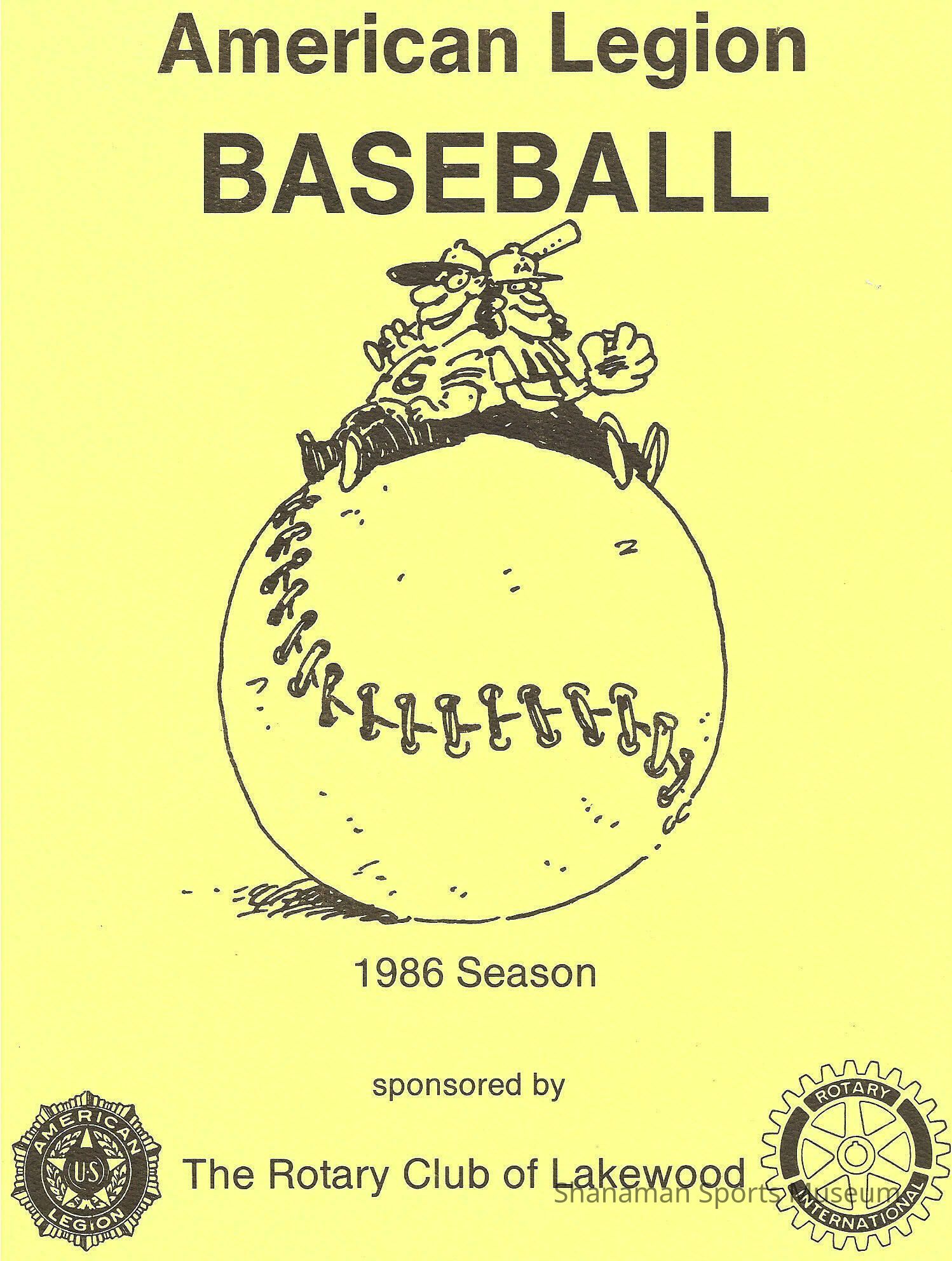 Program- American Legion Baseball, 1986 Season sponsored by the Rotarty Club of Lakewood.