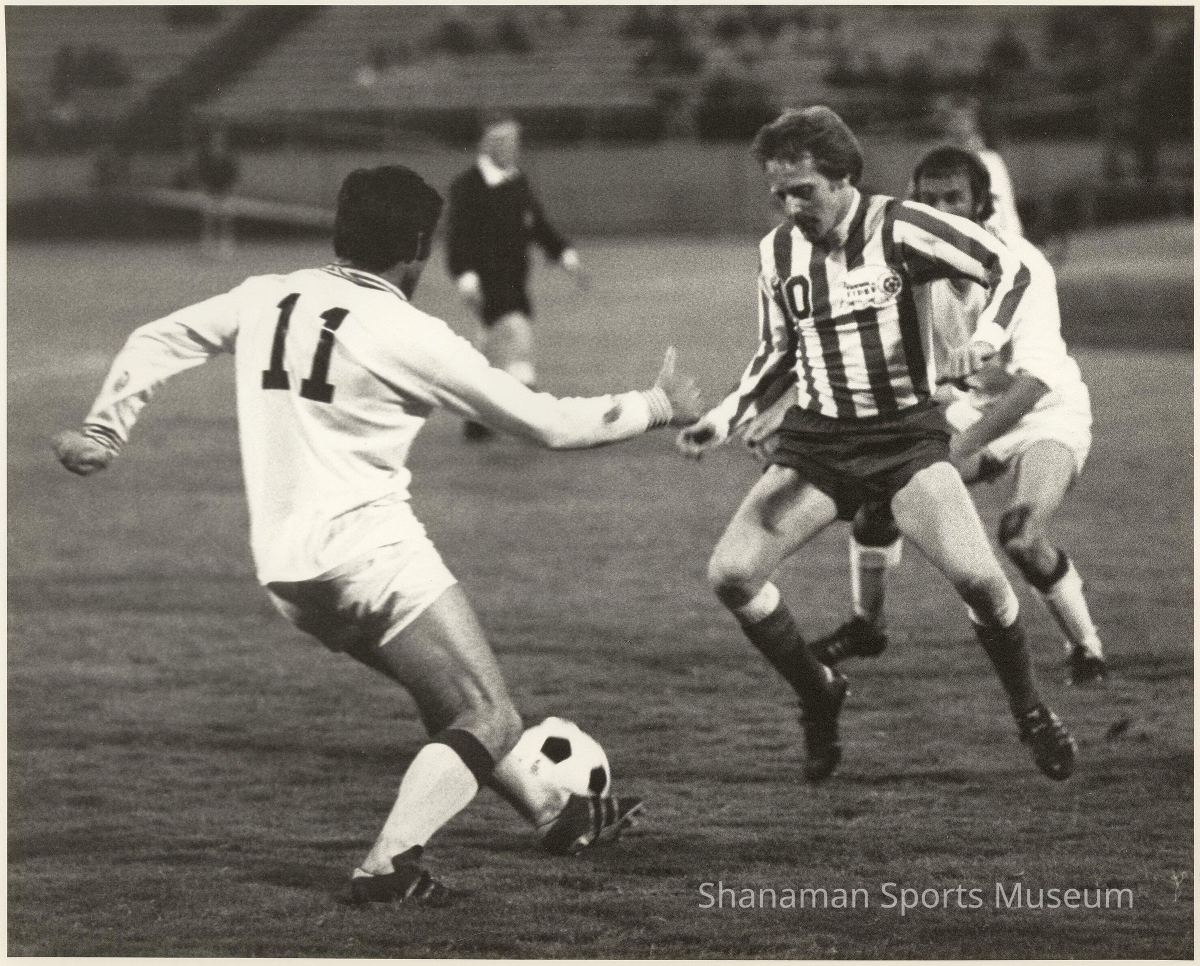 David Chadwick, right, of the Tacoma Tides defends against an unknown opponent during an American Soccer League match in 1976.