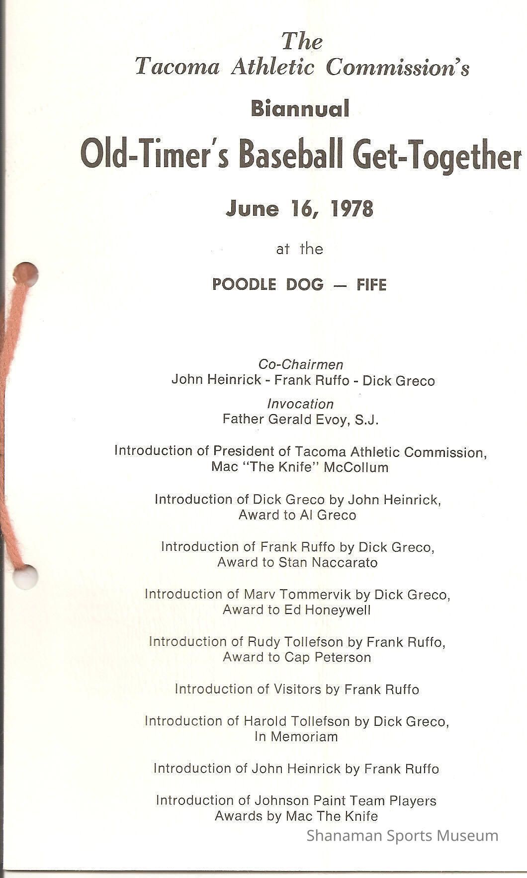 Program- Old Timers Baseball 1978 Get Together
