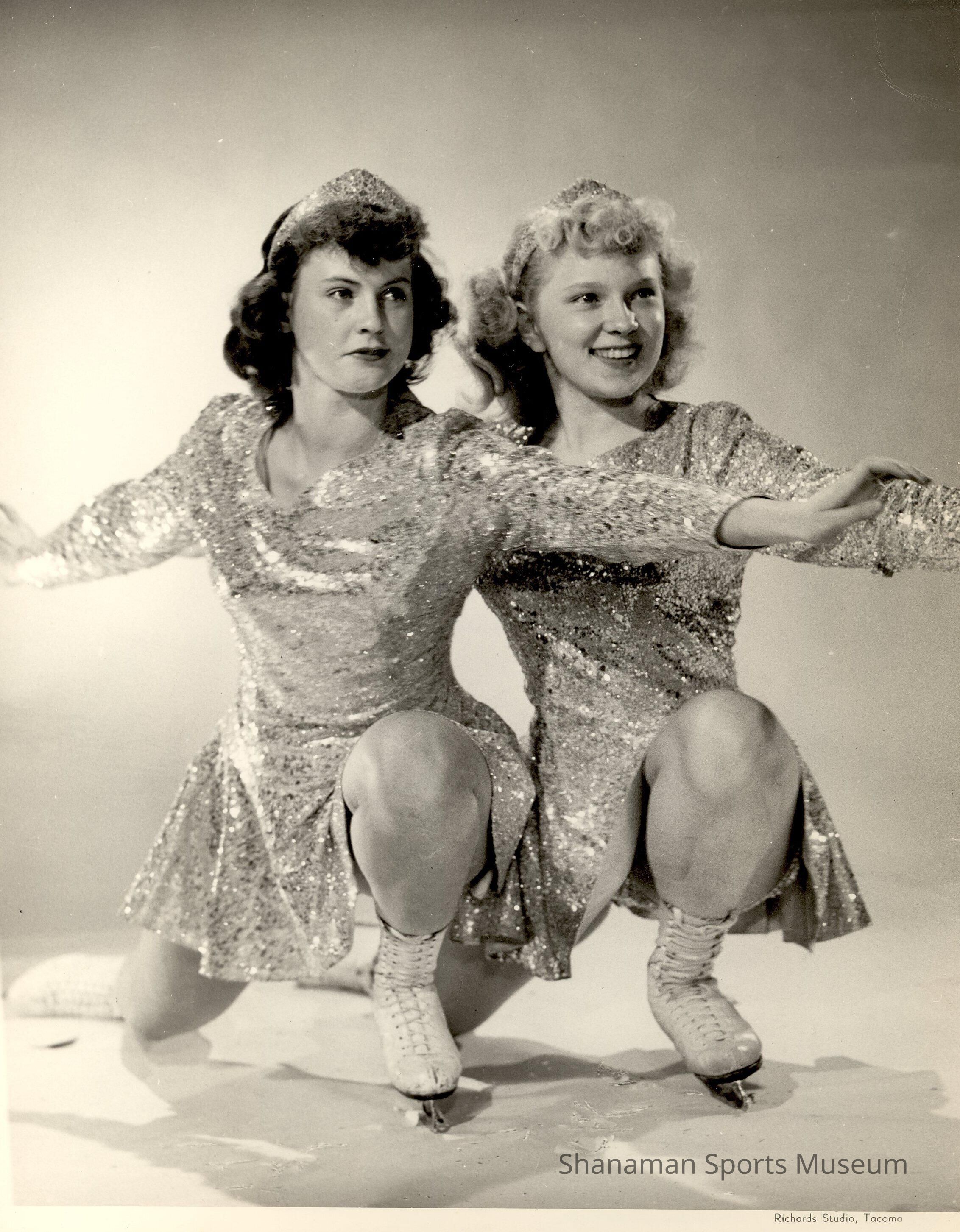 Photo of Patsy Hamm (left) and Ladies Pairs Division partner Diane Jacobsen by Richards Studio of Tacoma. Patsy (Hamm) Dillingham began skating in 1942 when she and her family moved from Eatonville to Lakewood. Hamm and her partners won the Northwest and Pacific Coast Junior Pairs and Ladies Pairs events by 1948. In 1949 Hamm won the Northwest Novice Ladies title and placed fourth in the U.S. North American team Senior Pairs. Her success continued in 1950 when she won Northwest Junior Ladies and Northwest and Pacific Coast Senior Pairs championships. Hamm, a Clover Park graduate, began skating professionally in 1951 and teaching classes at the Lakewood rink. Among her top students were Jerry and Julianne Fotheringill, two-time national pairs champions. Hamm was inducted into the Tacoma Sports Hall of Fame in 2005.