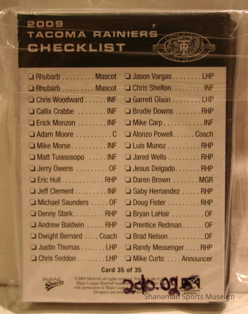 Trading Cards, package of 2009 season Tacoma Rainiers baseball trading cards.