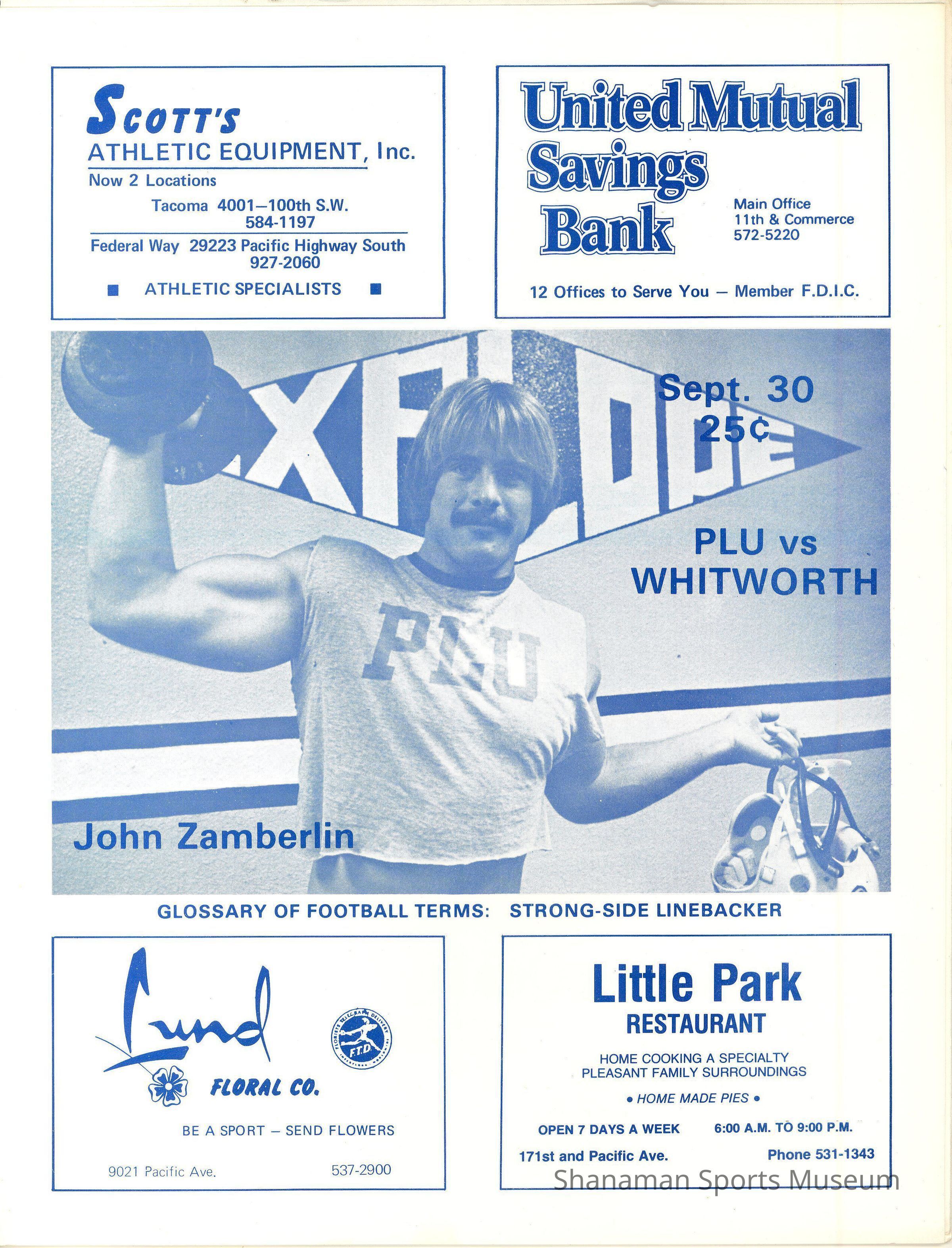 Program- football, PLU vs. Whitworth, Sept. 30, 1978.Archive Details