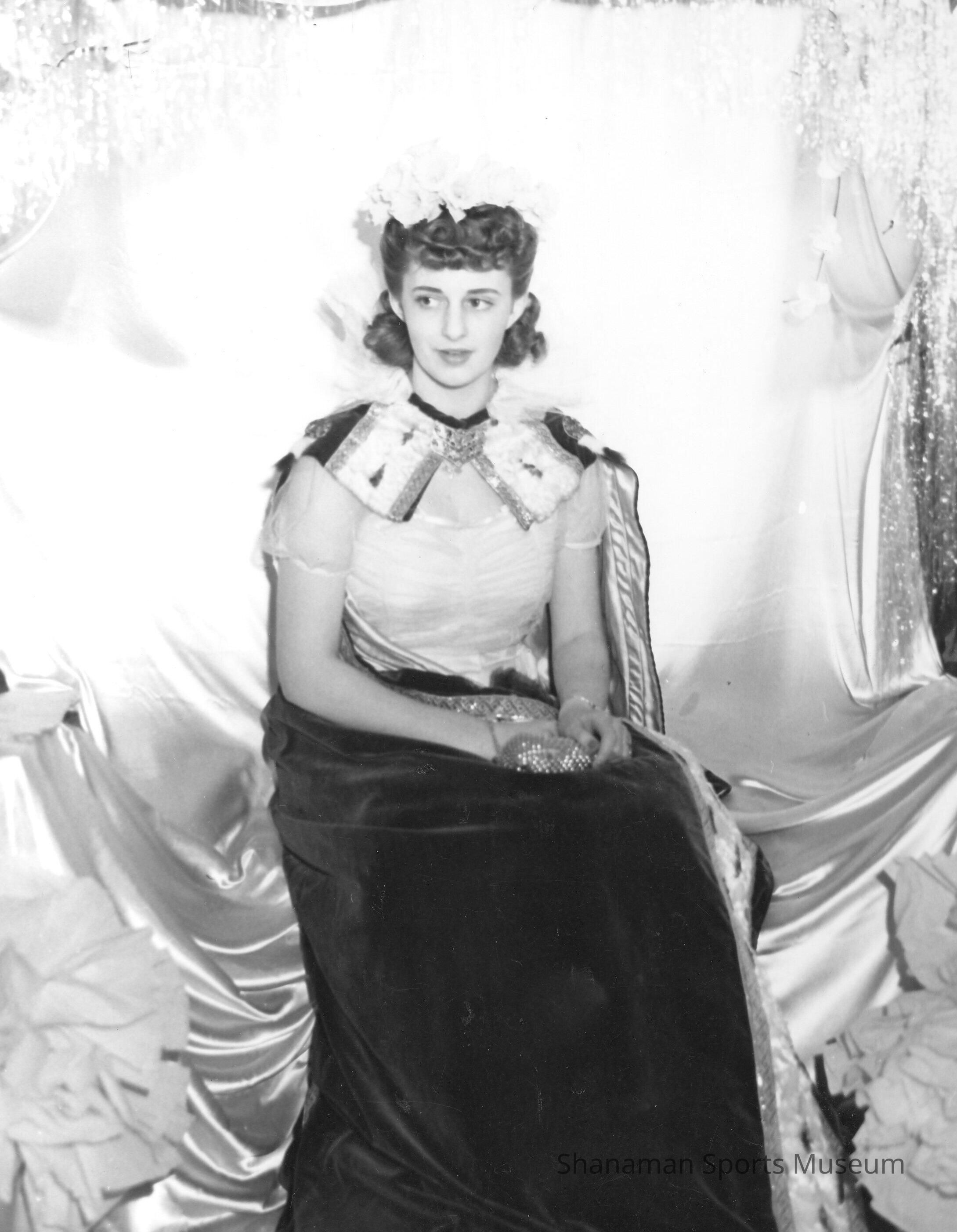 An unidentified woman, wearing an ermine cape sitting in front of a silk backdrop, poses at the Lakewood Ice Arena. It was a popular hangout spot for families and couples, and teenagers. The arena was home to many top level skaters when it opened in the 1930s. By 1955 the show had eight performances and 175 skaters. The rink hosted numerous shows and was the entertainment hub for Tacoma residents until 1982 when part of the building collapsed and the rest was demolished.Made/Created
