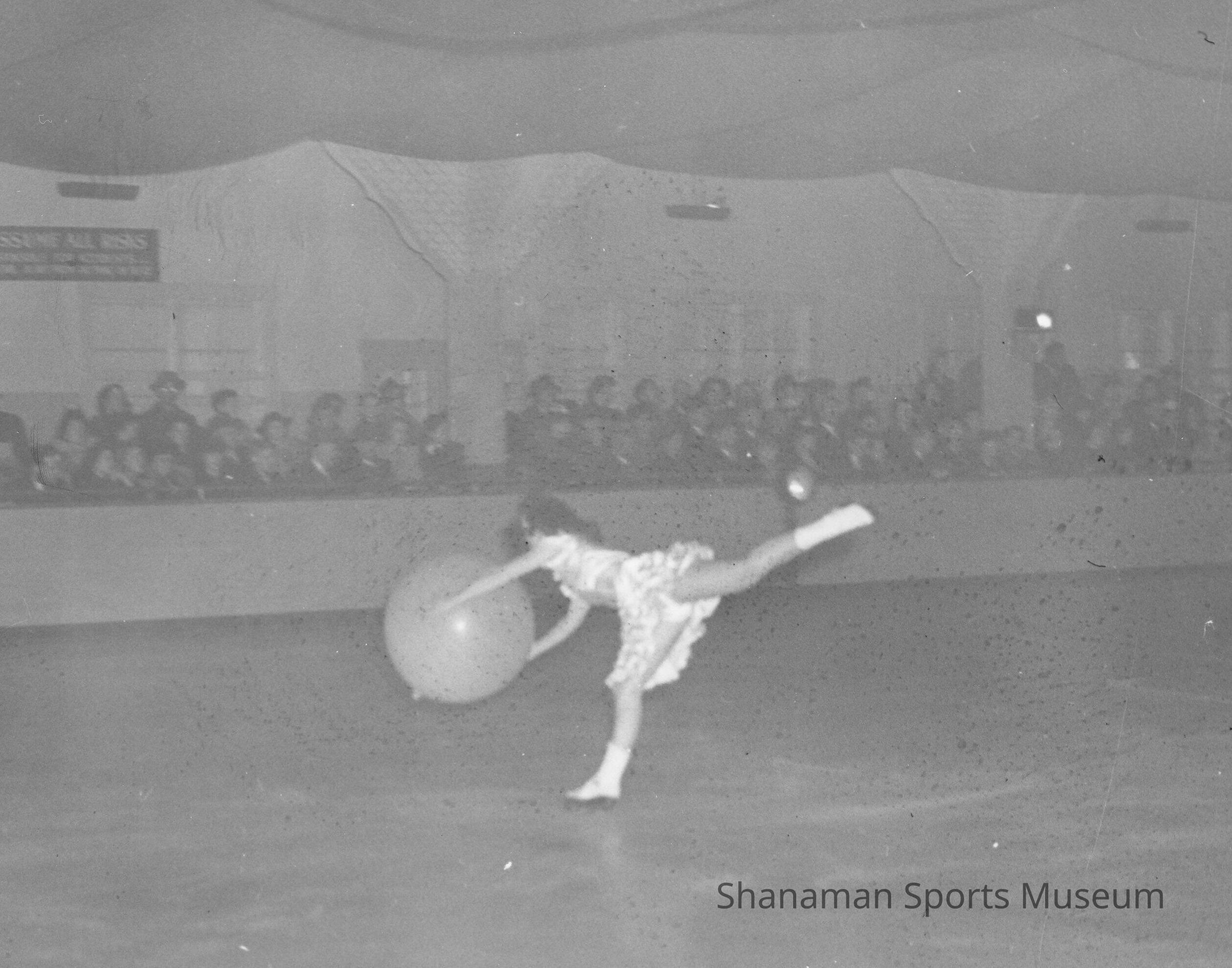 An unidentified skater performs in an ice show at the Lakewood Winter Club, aka Lakewood Ice Arena, show. By 1955 the show had eight performances and 175 skaters. The rink hosted numerous shows and was the entertainment hub for Tacoma residents until 1982 when part of the building collapsed and the rest was demolished.Made/Created