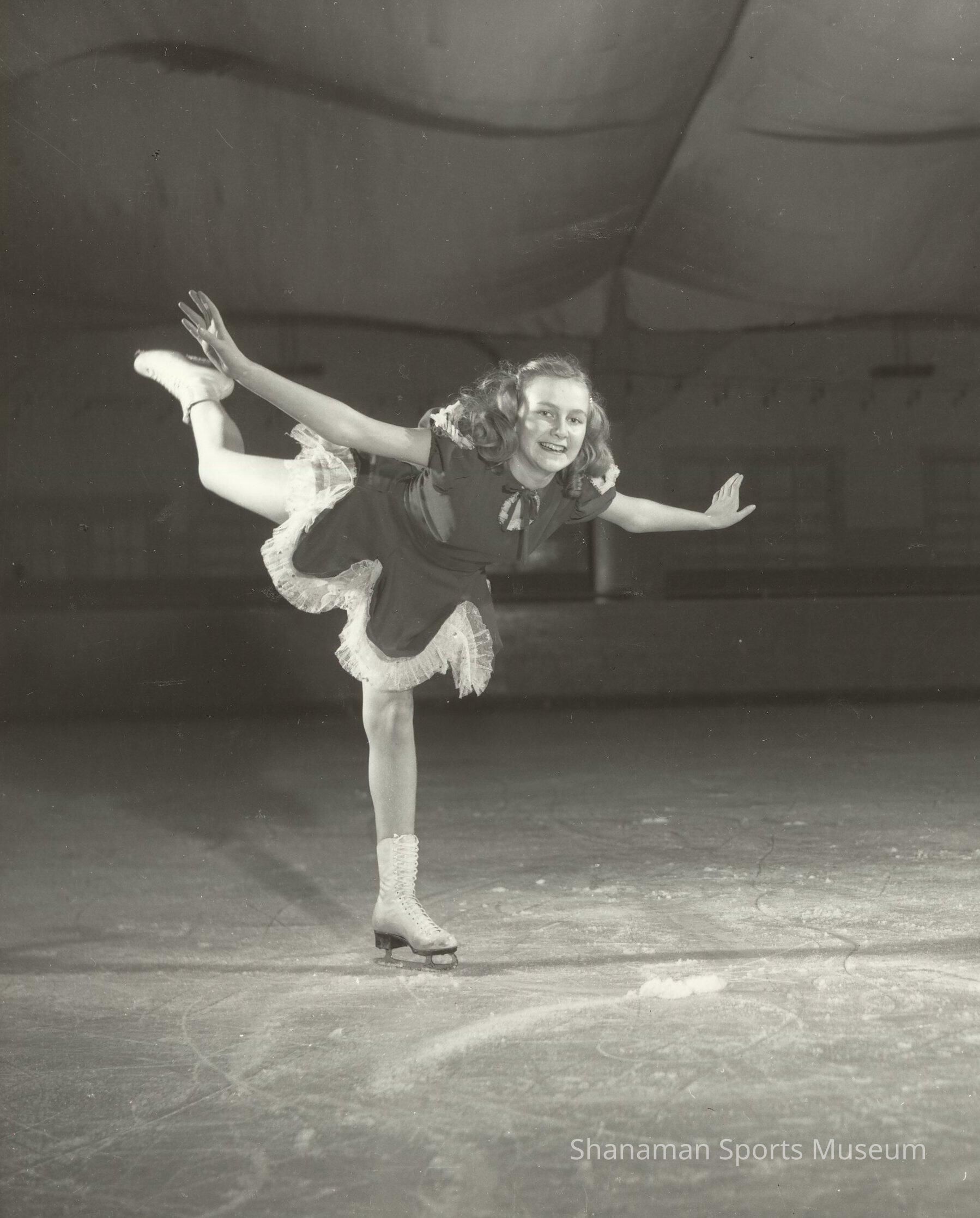Lakewood Figure Skating Club’s Nancy Roberts was one of the many accomplished ice skaters to perform at the Lakewood Ice Arena during its heyday. Roberts went on to perform in the Ice Follies and other touring shows, which received great accolades and had as many as 175 skaters performing in eight shows by the mid 1950s.Made/Created
