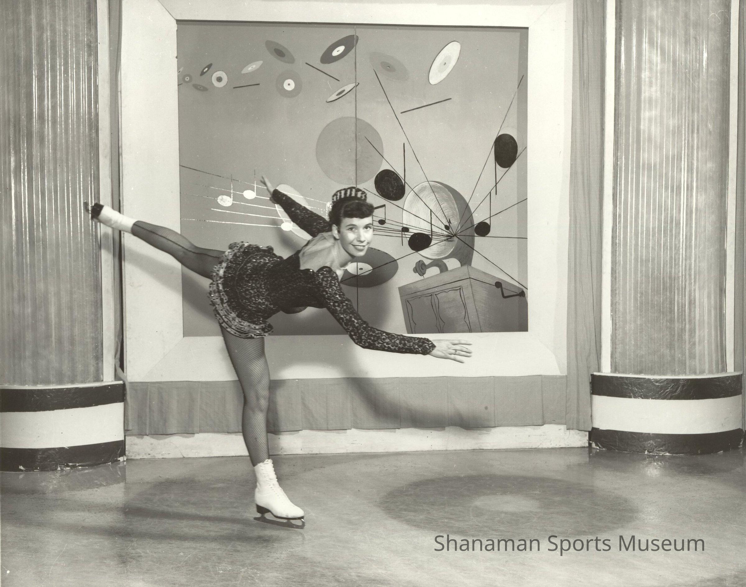Sally Price, shown posing in a Spanish-style skating costume, was one of the accomplished skaters to call the Lakewood Ice Arena home. Price won the Senior Ladies Northwest Championship and was named a Babbit Award winner for Most Artistic Performance for Lakewood.Made/Created