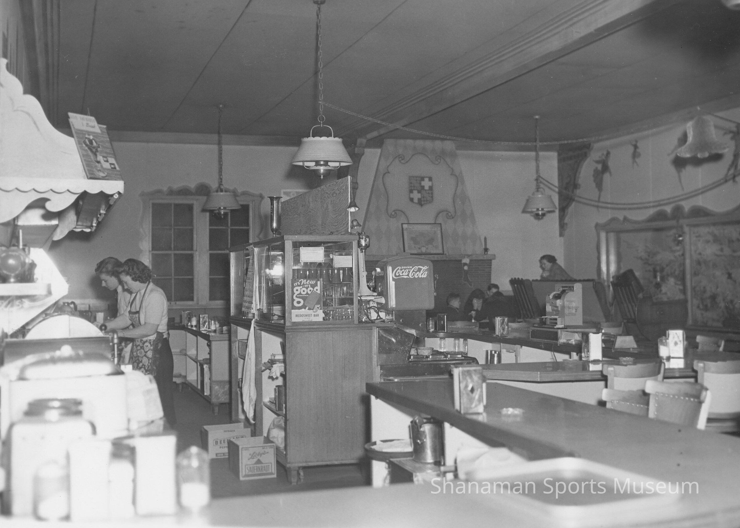 The Lakewood Ice Arena snack bar was a big draw for skaters who worked up big thirsts and appetites skating at the rink when it opened in the late 1930s. Don Gilbertson and his mother, Elsie Gilbertson, ran the snack bar for many years and are pictured here in 1949. The arena opened in 1938 and quickly became an entertainment hub for Tacoma area residents of all ages. The rink continued to provide skating until part of the building collapsed in 1982 and there rest was demolished.Made/Created