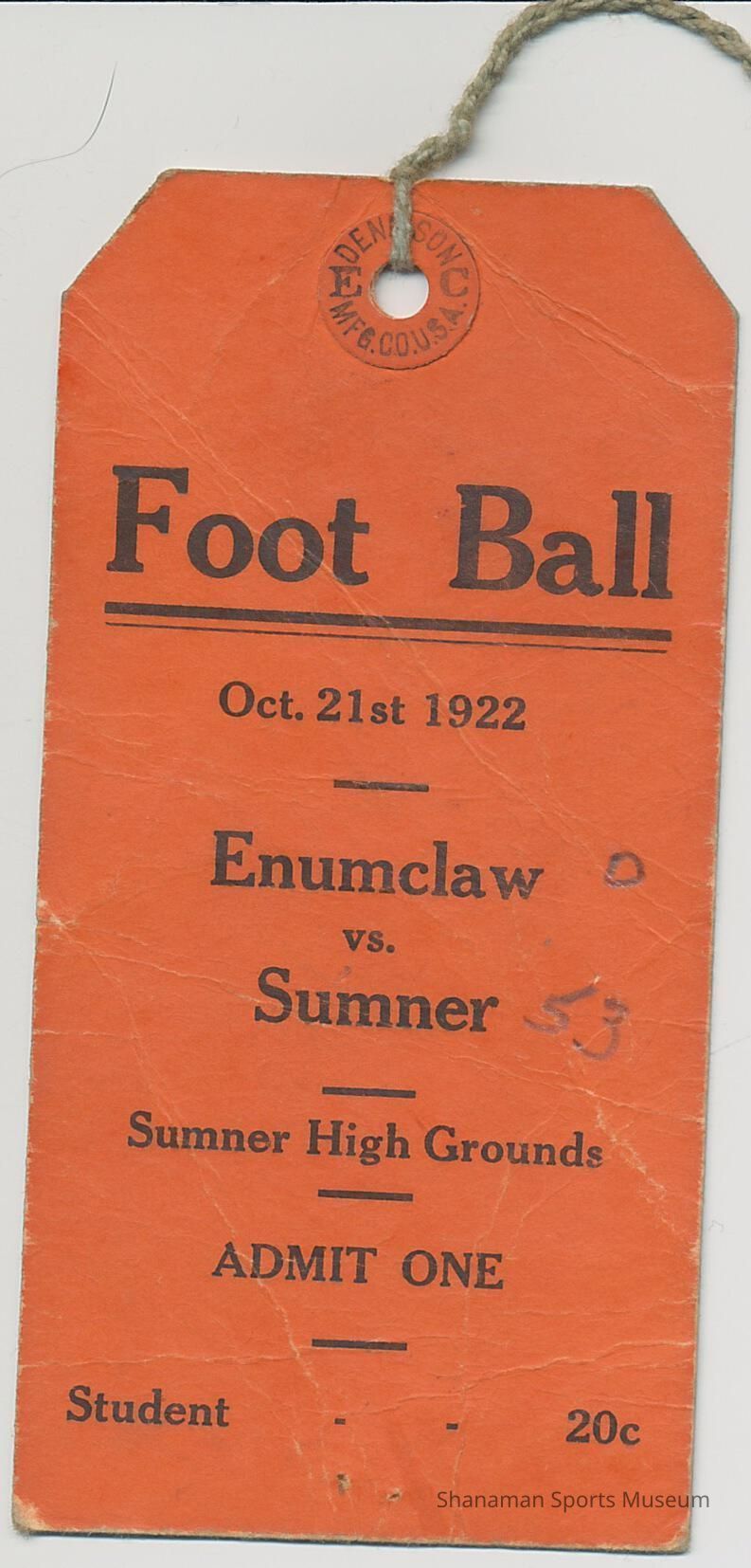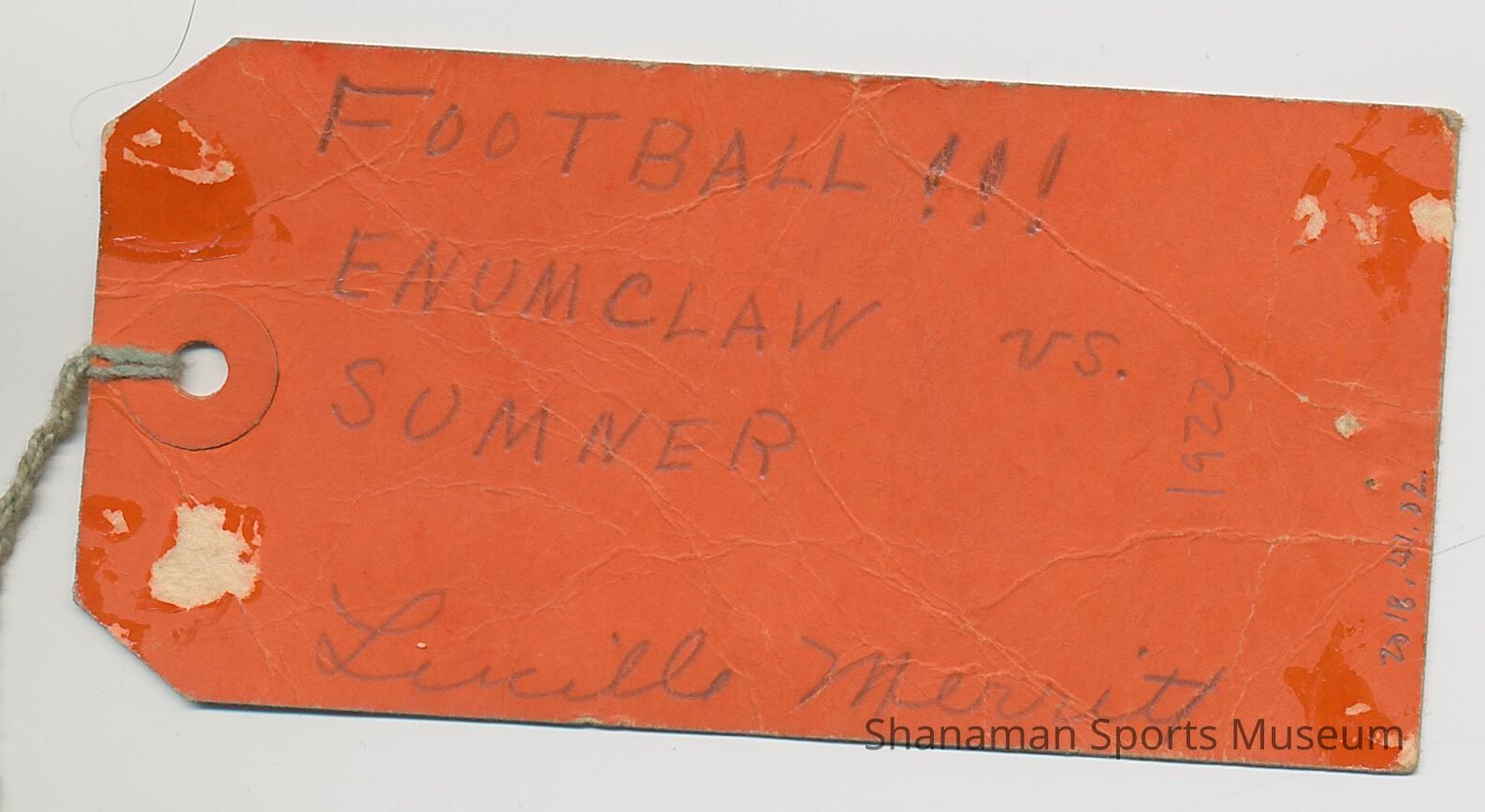 Student Ticket to Football Game: Enumclaw High School vs. Sumner High School, October 21, 1922 at Sumner High GroundsLexicon