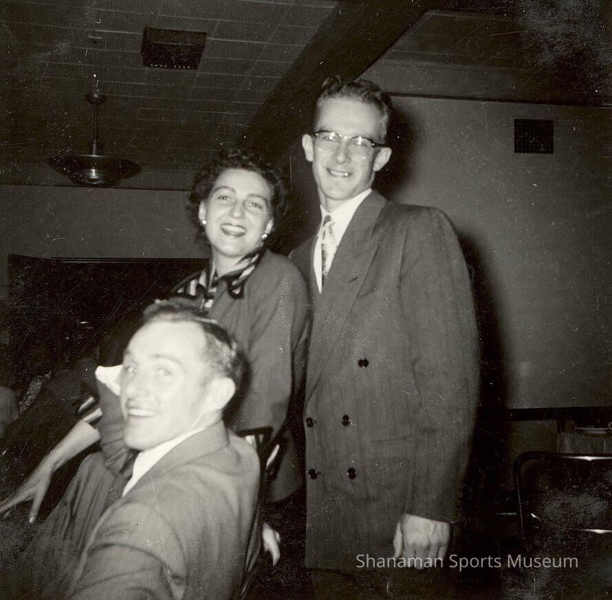 Frank Rush, seated in foreground of picture, along with Mickey Gilhus and an unidentified woman at the Lakewood Ice Arena. The arena was the entertainment hub for Tacoma residents and its where Rush met his wife, Dottie, who was working at the ice arena.