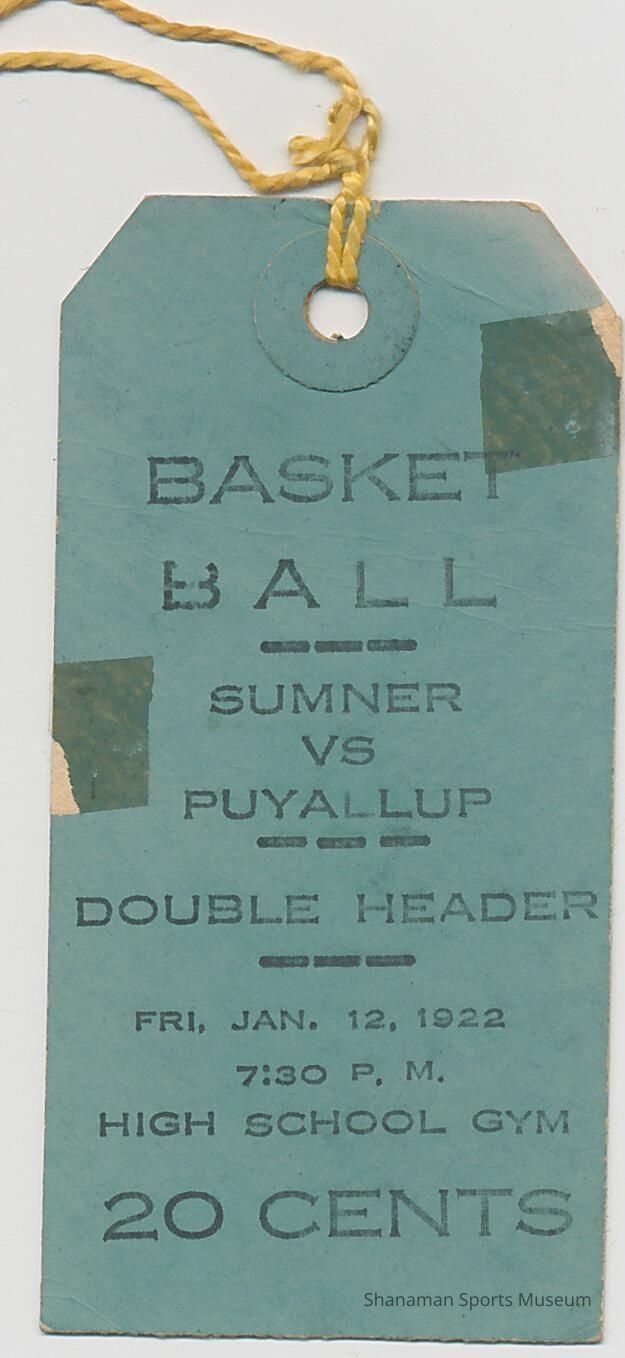 Ticket to Basketball Game: Sumner High School vs. Puyallup High School, Double Header, Friday, January 12, 1922 at High School GymLexicon