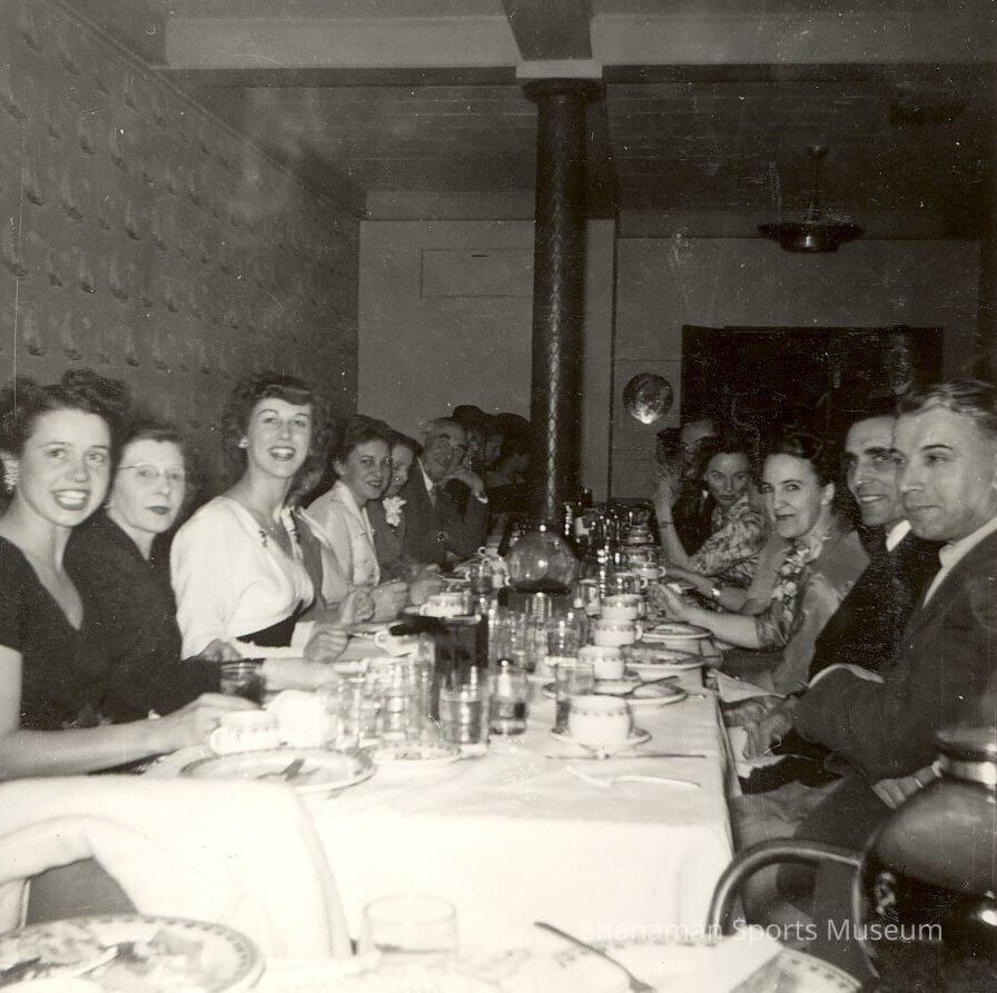 A 1951 cast party for the Ice Capers show. The Lakewood Ice Arena was home to many top level skaters when it opened in the 1930s. By 1955 the show had eight performances and 175 skaters. The rink hosted numerous shows and was the entertainment hub for Tacoma residents until 1982 when part of the building collapsed and the rest was demolished.