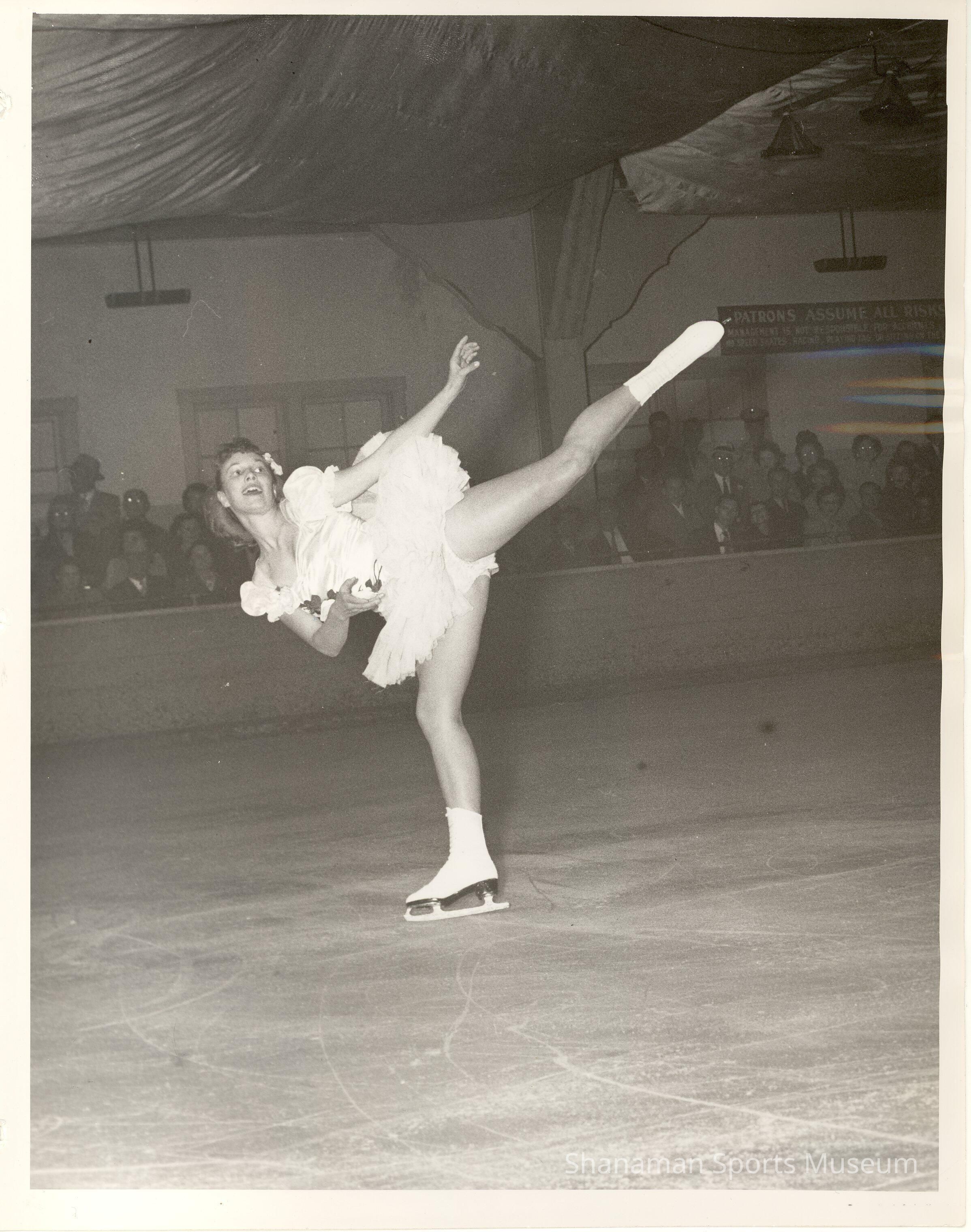 Pat Firth represented Lakewood in regional, national and world competition, winning her first championship in 1951, the Northwest Senior Ladies, and was third in Junior Ladies at nationals. Firth won the Pacific Coast Senior Ladies in 1952 and moved up a spot to second in Junior Ladies at nationals. She repeated as Pacific Coast champion in 1953 and then won the national Junior Ladies title, earning a spot on Team USA’s world team, placing seventh at the world championships in 1955 in Vienna, Austria. Firth was especially qualified at figures — which amounted to 60 percent of the overall score. She went on to earn her United States and Canadian Golf Test medals in figures and freestyle. Firth also earned a master’s rating as a skating teacher and coach. She was inducted into the Tacoma Sports Hall of Fame in 2005. Firth is pictured during an Ice Capers show, circa 1952. Photo by Stuart B. Hertz, Seattle.Lexicon