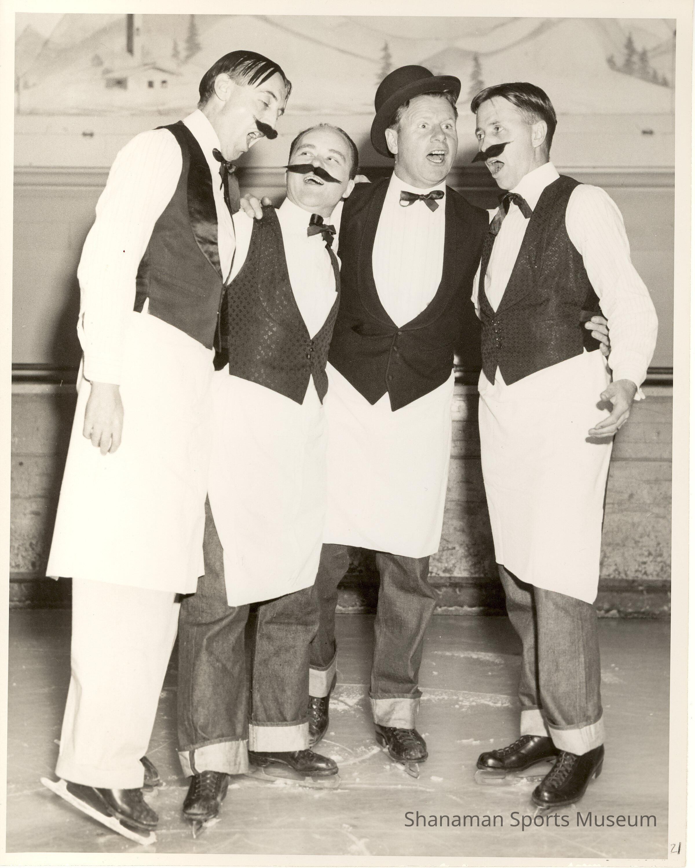 Skaters peform a barbershop quartet number during the annual Ice Capers show at the Lakewood Ice Arena. The arena was home to many top level skaters when it opened in the 1930s. It was a popular hangout spot for families and couples, and teenagers. By 1955 the show had eight performances and 175 skaters. The rink hosted numerous shows and was the entertainment hub for Tacoma residents until 1982 when part of the building collapsed and the rest was demolished.Made/Created