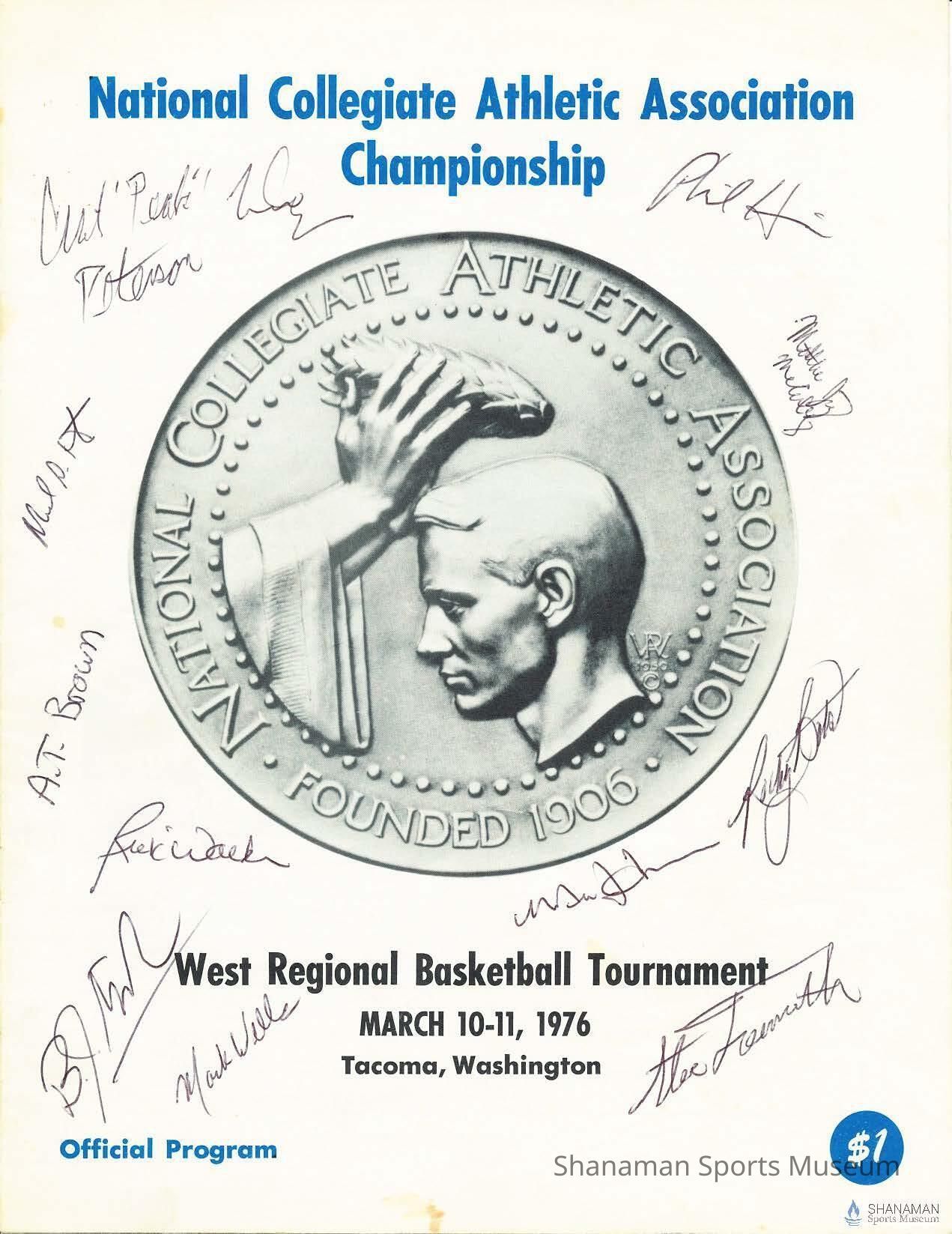 1976 National Collegiate Athletic Association Championship program from West Retional Basketball Tournament - autographed by players=Lexicon