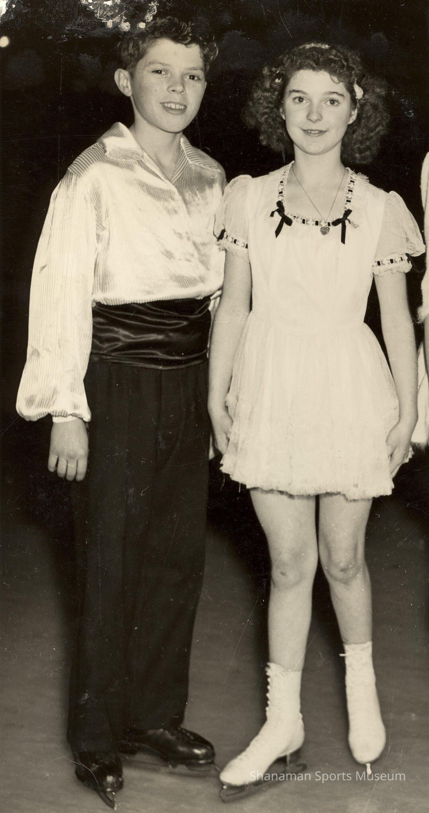 Lois Secreto and Jimmy Grogan began skating together as children at Lakewood Ice Arena. The pair won the 1945 to win the Pacific Coast Junior Pairs Competition. Secreto, who also won the Northwest Juvenile Girls title in 1942 and in 1946, Secreto won the Northwest Novice Ladies title followed by the Northwest Senior title in 1947 and a second Pacific Coast Senior Ladies title in 1950. That win qualified her for the national championships where she tied for first place in the freestyle skating event. After graduating from Stadium High School, Secreto joined the Shipstads and Johnson Ice Follies. Grogan won earned numerous junior and senior trophies before he went on to become a two-time Olympian, a four-time world silver medalist and U.S. champion. He also went on to star in the Hollywood Ice Revue and the Ice Capades and inducted into the U.S. Figure Skating Hall of Fame. Photo by Stuart B. Hertz.