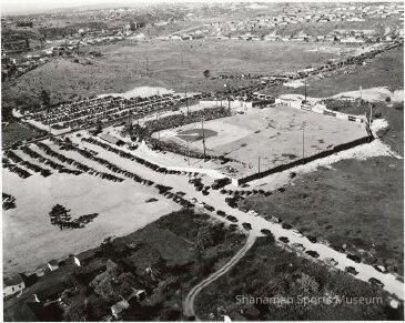 Aerial view of Tiger Park located at S. 38th and Warner. The stadium was built for the Tacoma Tigers of the Western International League where the team played at the park for six years from 1946-1951. Owner Enoch Alexson spent an estimated $150,000 in building the park. The first year saw nineteen year old catcher Dick Kemper star for the Tigers where he finished second in league with a .355 batting average and drove in 106 RBIs. Tiger Park would later be purchased by Benjamin Bradford Cheney where the legendary business man built Tacoma landmark Cheney Stadium in 1960 in which he paid $870,000 out of his own pocket and had the new stadium built within three months. The new ballpark became the home of the San Francisco Giants’ minor league affiliate.Made/Created