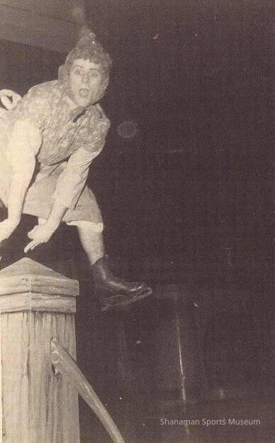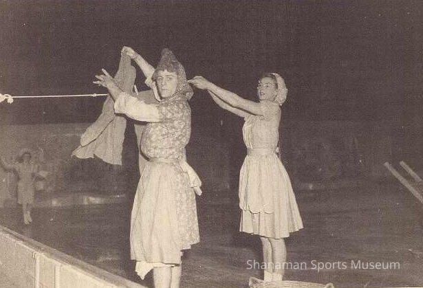 John Mulvey, pictured in the 1950 group comedy “Down on the Farm” skated at the Lakewood Ice Arena. Mulvey teamed with Patricia Hoyt and began touring in 1947, starting a long stream of local skaters who toured with ice shows like the Ice Follies. The arena itself hosted numerous ice shows to great accolades and had as many as 175 skaters performing in eight shows by the mid 1950s.Lexicon