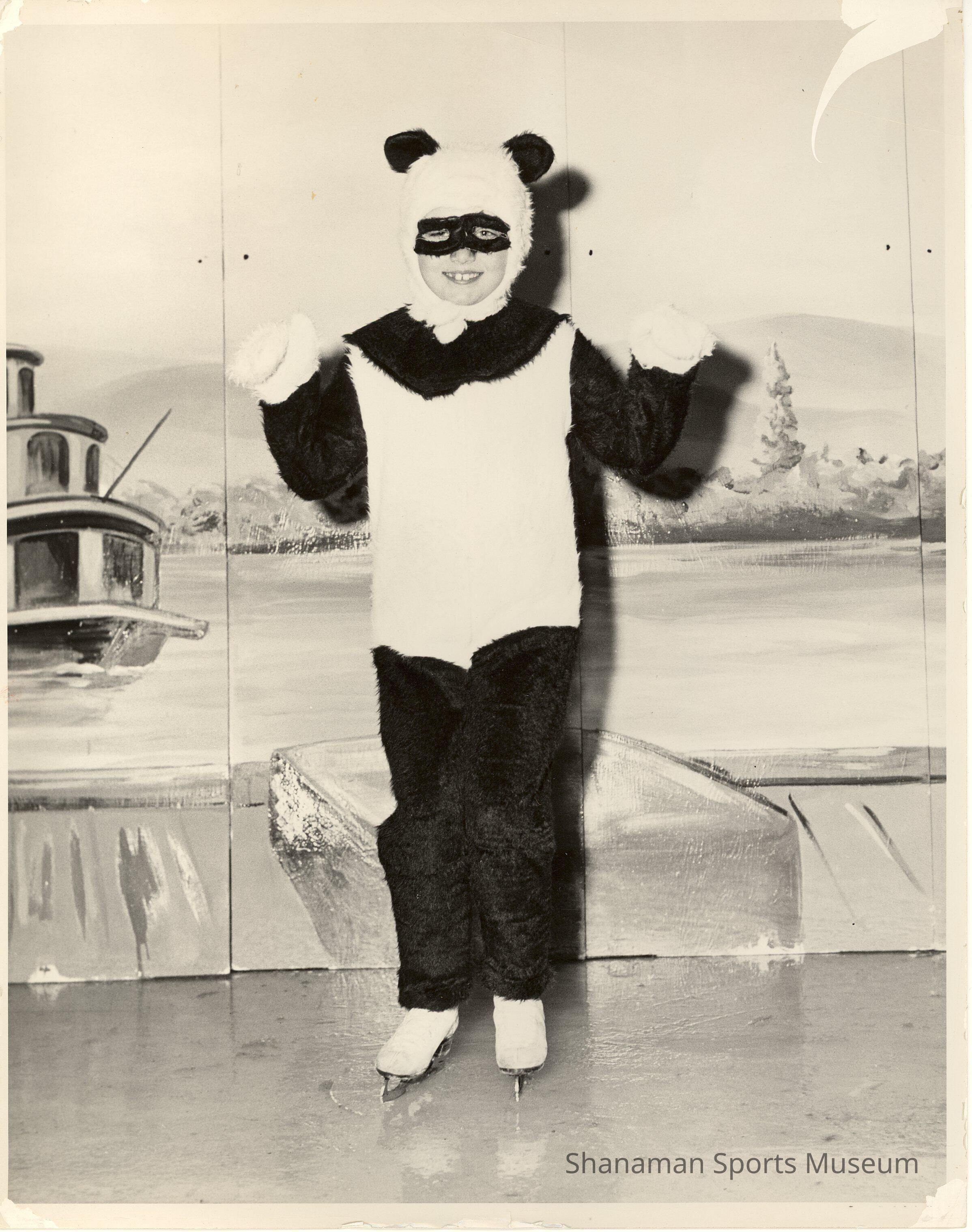 Patty Gilroy, aged 8, wears a panda costume for a number in the 1953 Ice Capers show at the Lakewood Ice Arena. Gilroy went on to place second at the 1958 Pacific Coast Championships Novice Ladies. She also earned gold in US Figure Skating Association in three disciplines, figures, dance and CFSA dance.Made/Created